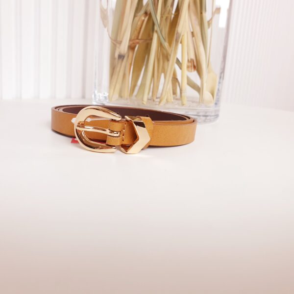 pasek, pasek damski, pasek skórzany, ma-za, ze złotą klamrą, karmelowy, cienki