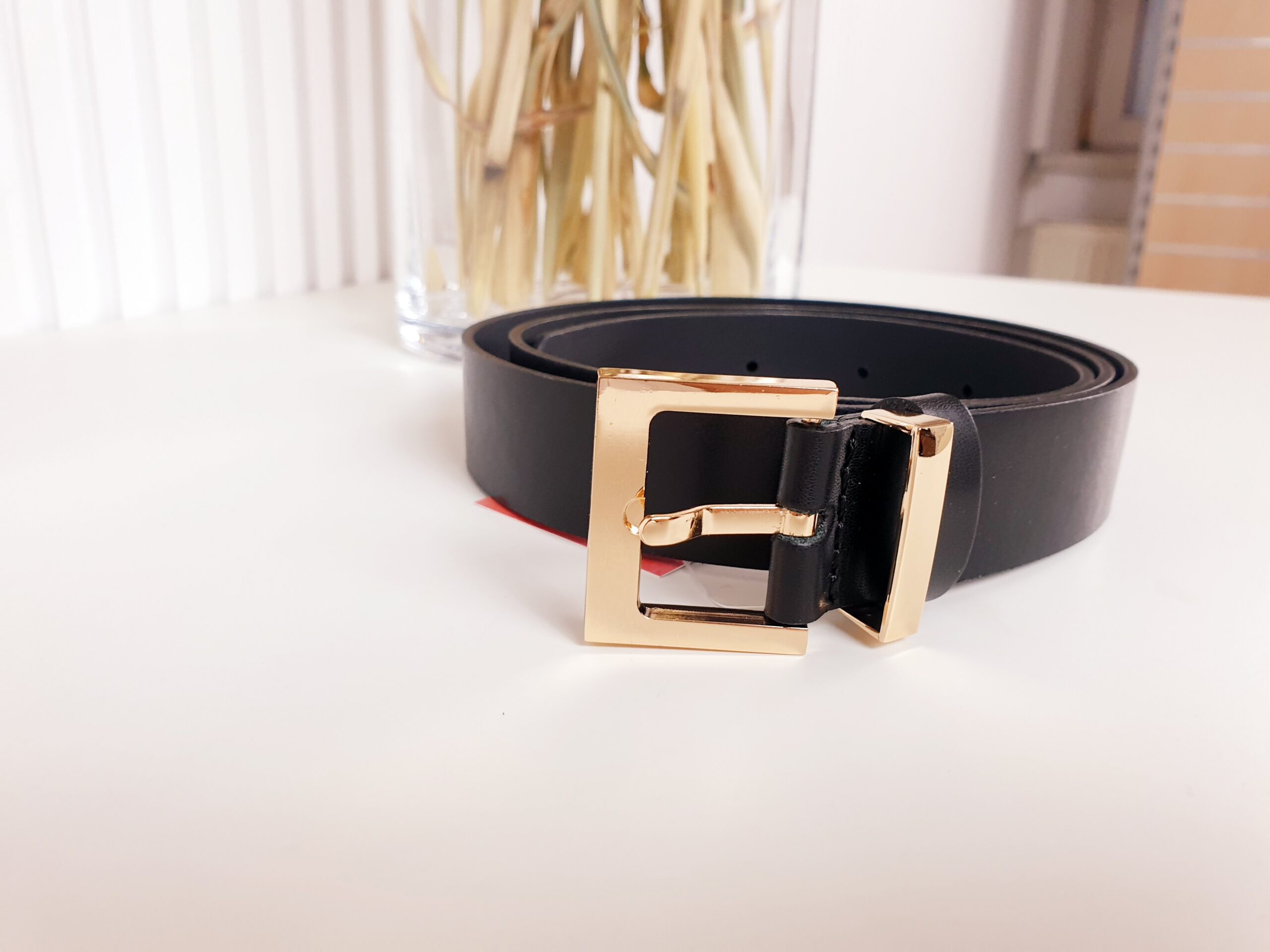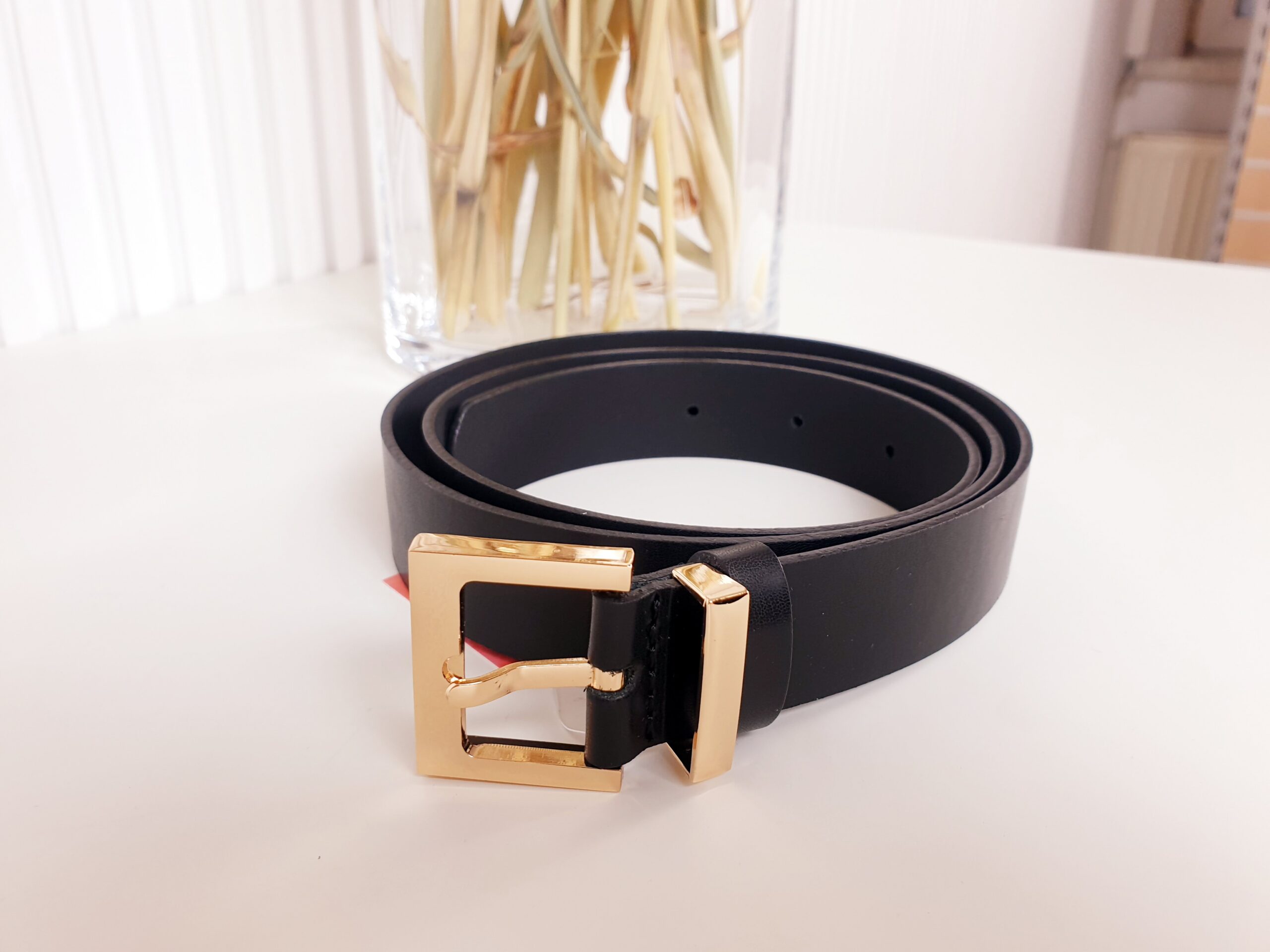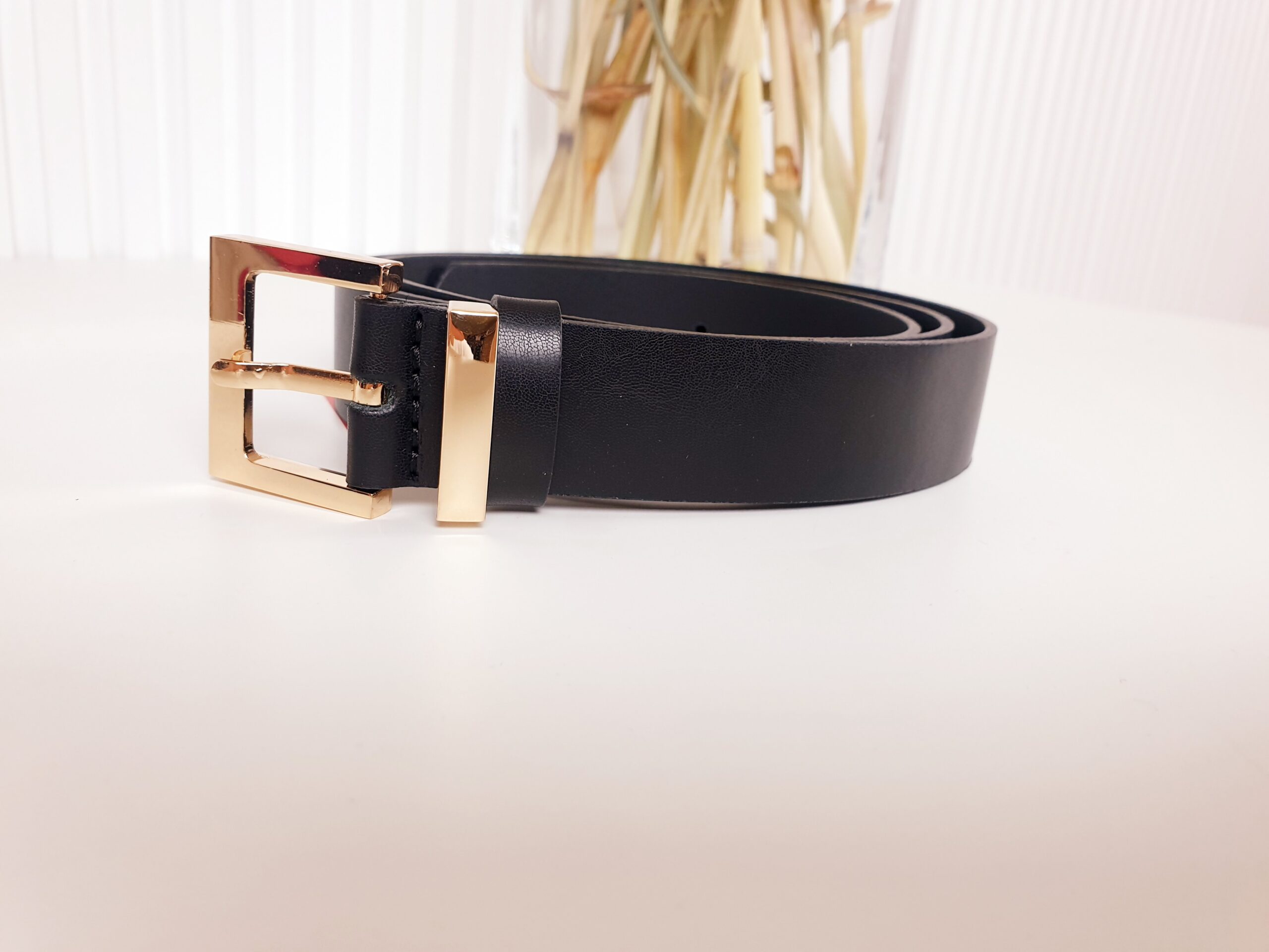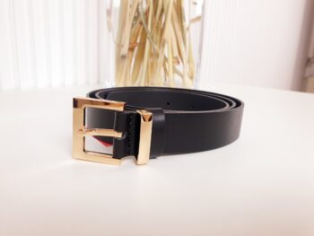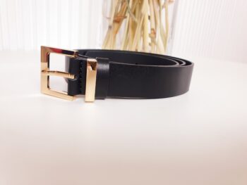 Czarny pasek damski ze złotą klamrą