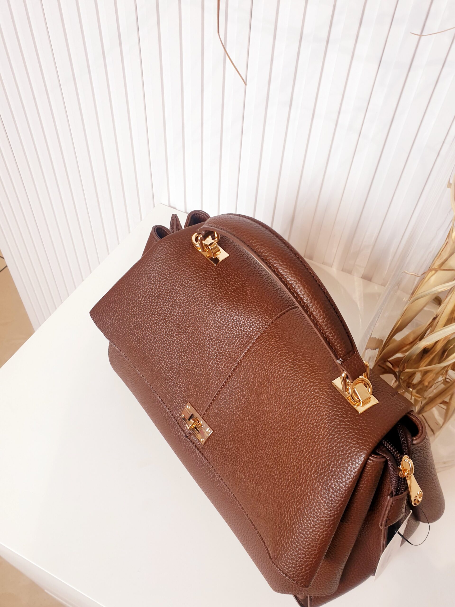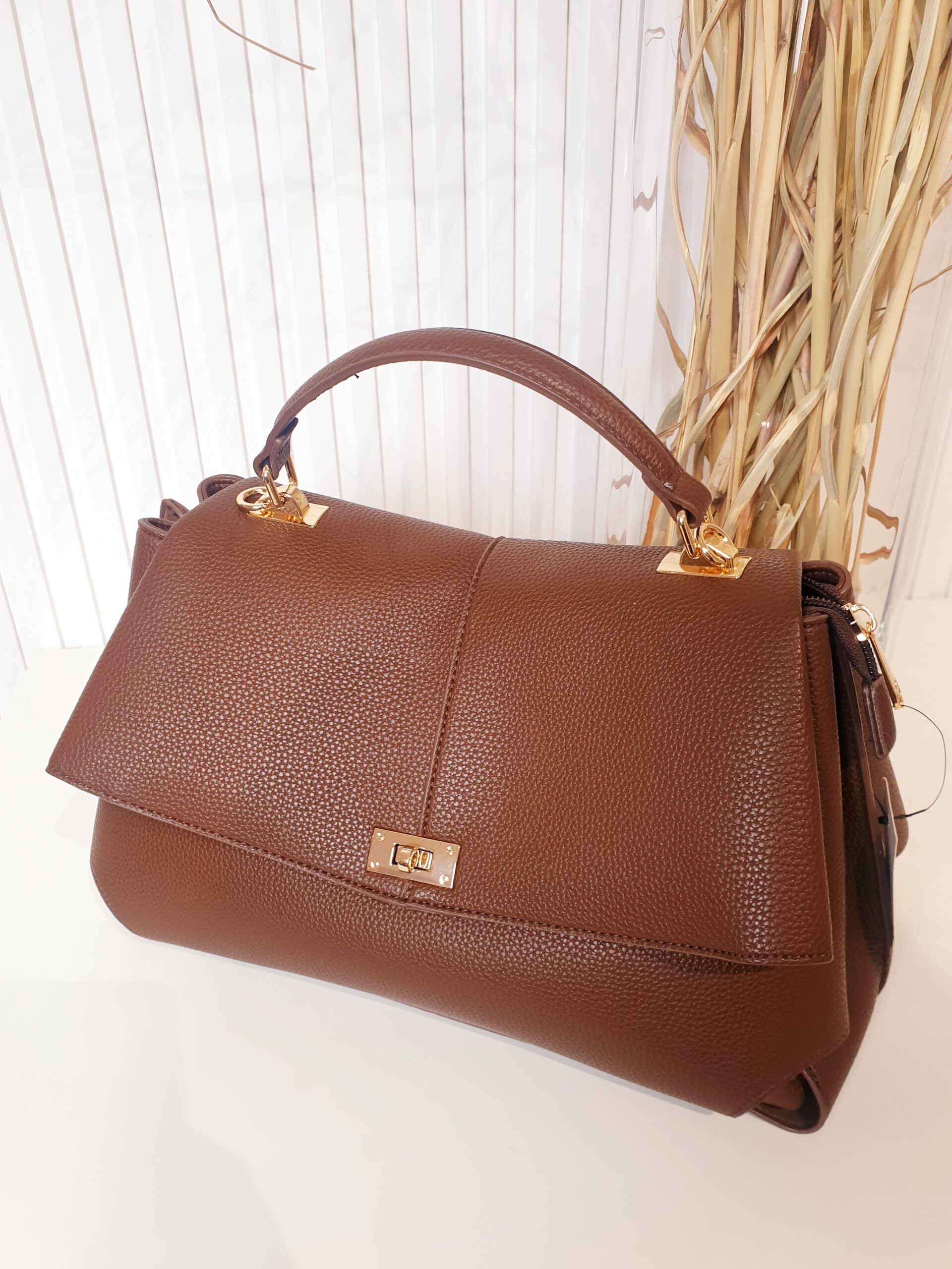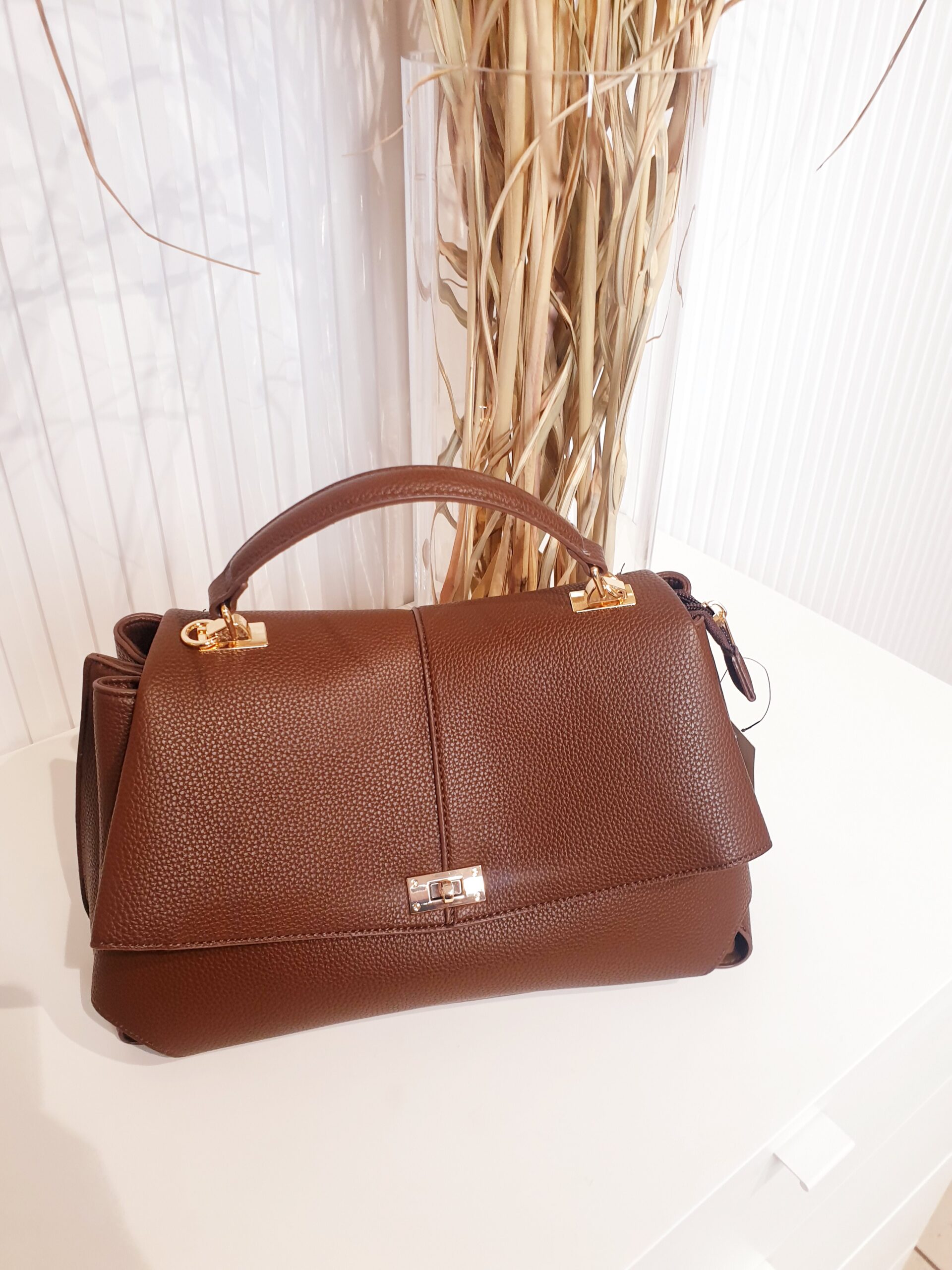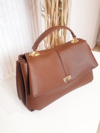 torebka, brązowa, skóra ekologiczna, kuferek, ze złotymi dodatkami