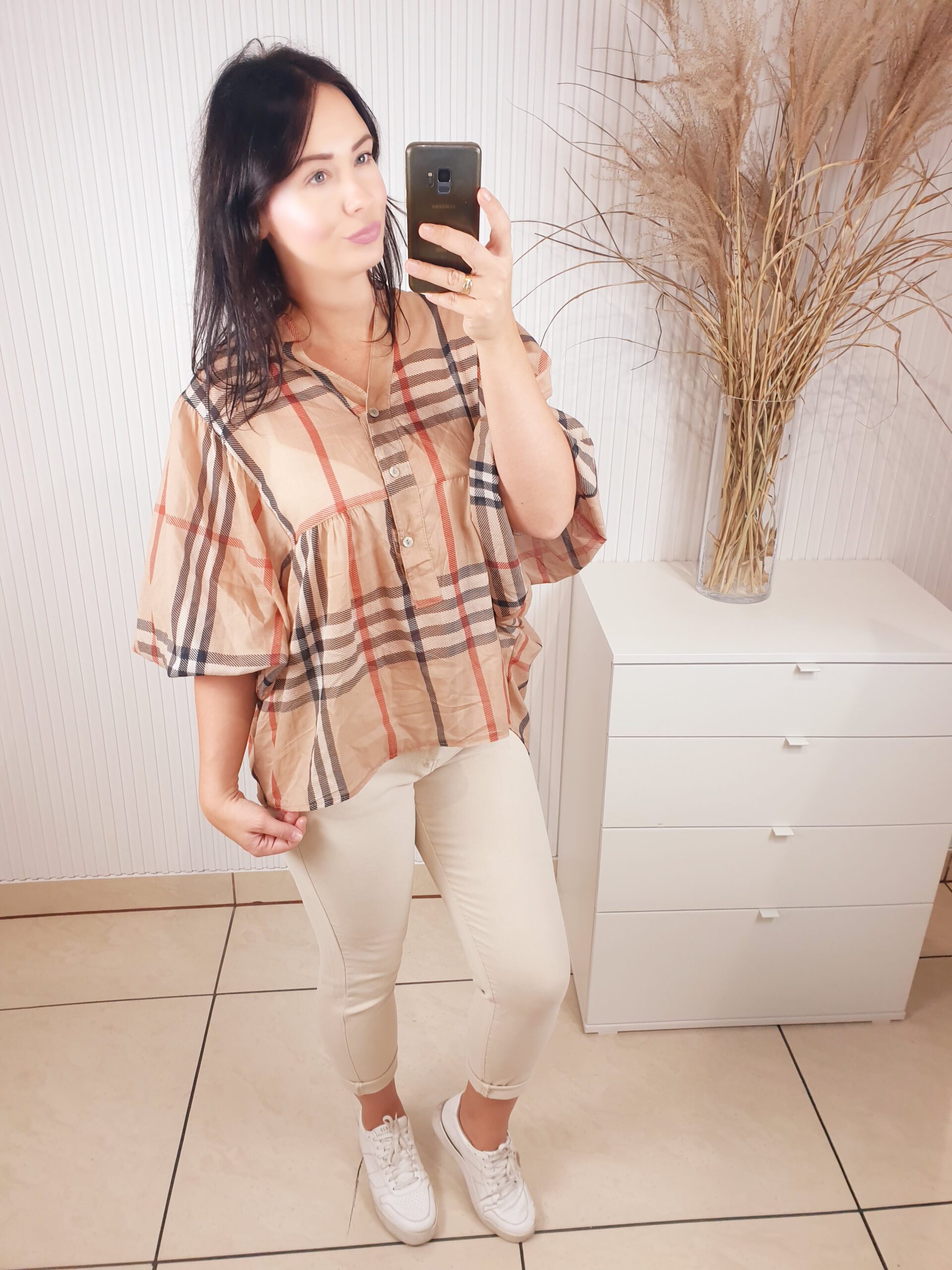 Strona główna Sklep Ubrania Bluzki Koszula Krata Beżowo-Czarna