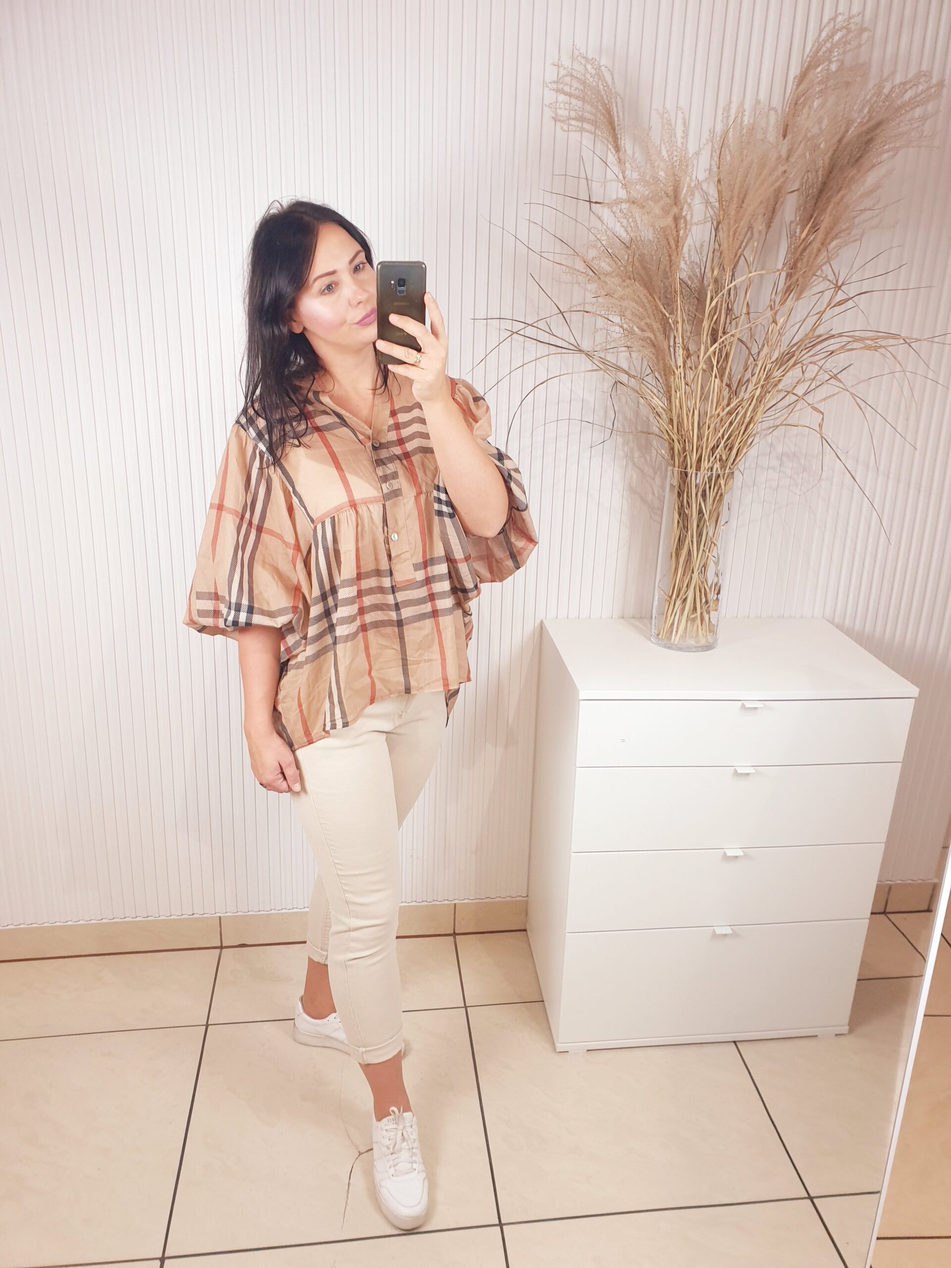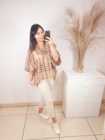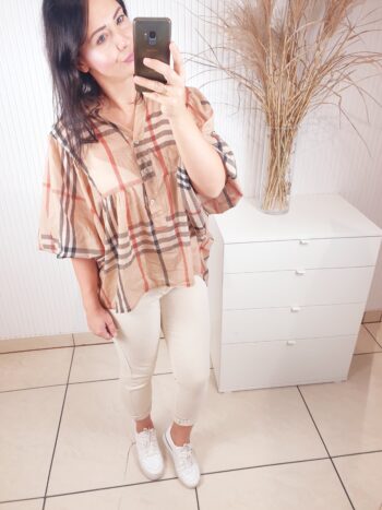 Cudowna bluzka o luźnym kroju, w ponadczasowy wzór kraty. Góra zapinana na guziki, wykonana w 100% z bawełny. Bardzo lekka- idealnie sprawdzi się do stylizacji ze spodniami.