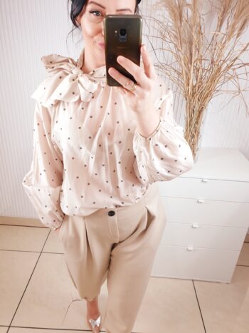 koszula, w groszki, beżowa, damska koszula w groszki, wiązana przy szyi