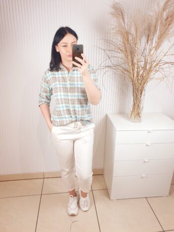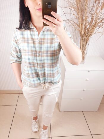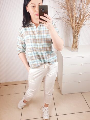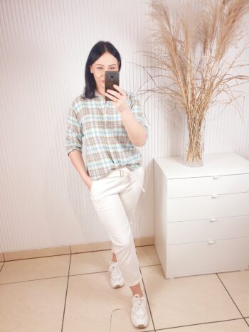 Stylowa koszula damska o luźnym kroju, która łączy klasykę z delikatną kobiecą subtelnością. Zapinana na guziki na całej długości, z klasycznym kołnierzykiem sprawdzi się zarówno w codziennych jak i bardziej formalnych stylizacjach. Wzór w kratę doda całości oryginalnego i wyjątkowego charakteru.