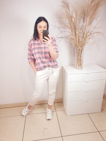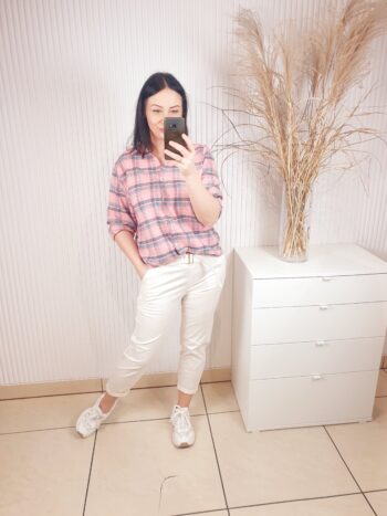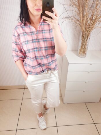 Stylowa koszula damska o luźnym kroju, która łączy klasykę z delikatną kobiecą subtelnością. Zapinana na guziki na całej długości, z klasycznym kołnierzykiem sprawdzi się zarówno w codziennych jak i bardziej formalnych stylizacjach. Wzór w kratę doda całości oryginalnego i wyjątkowego charakteru.