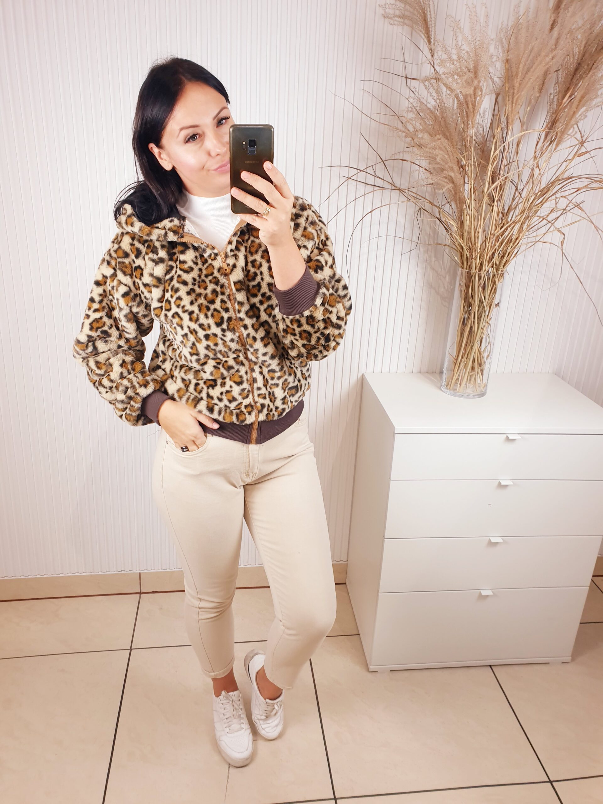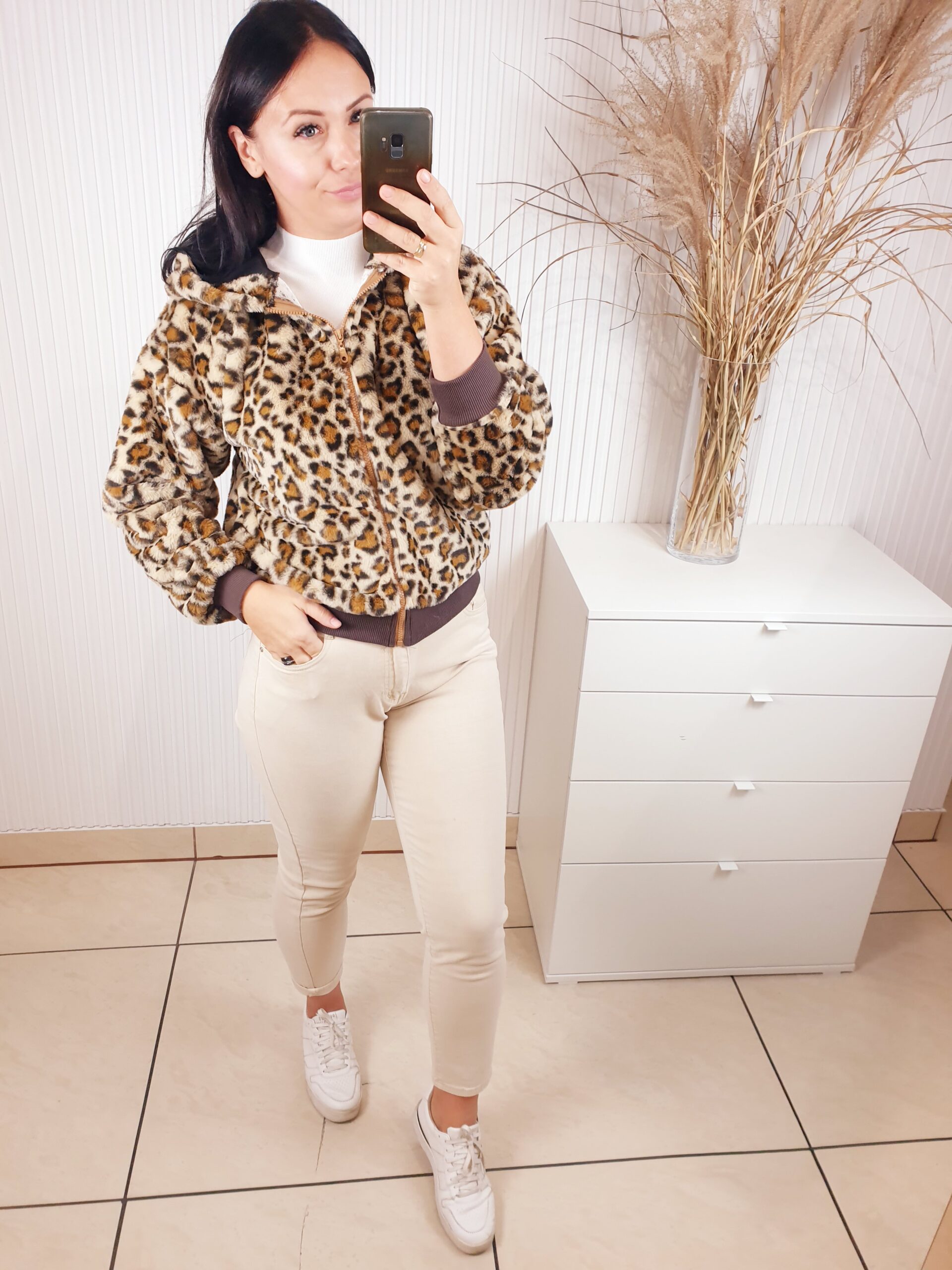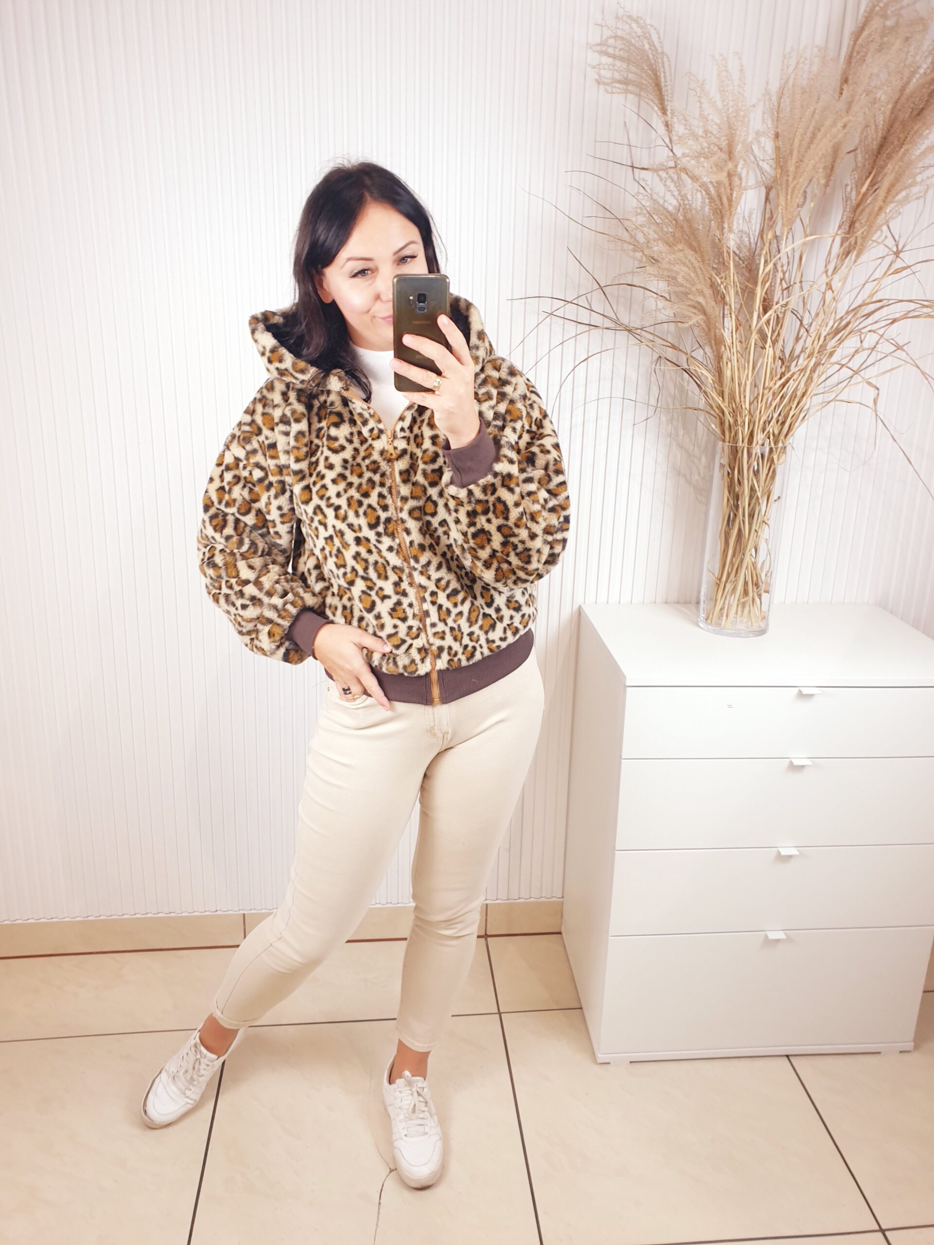 Ciepła bluza zapinana na zamek, posiada kaptur oraz kieszenie z przodu. W oryginalny wzór panterki. Bardzo ciepła, miękka i wygodna w noszeniu. Idealna na chłodniejsze dni.