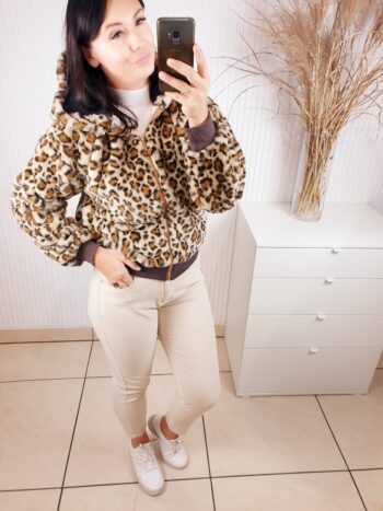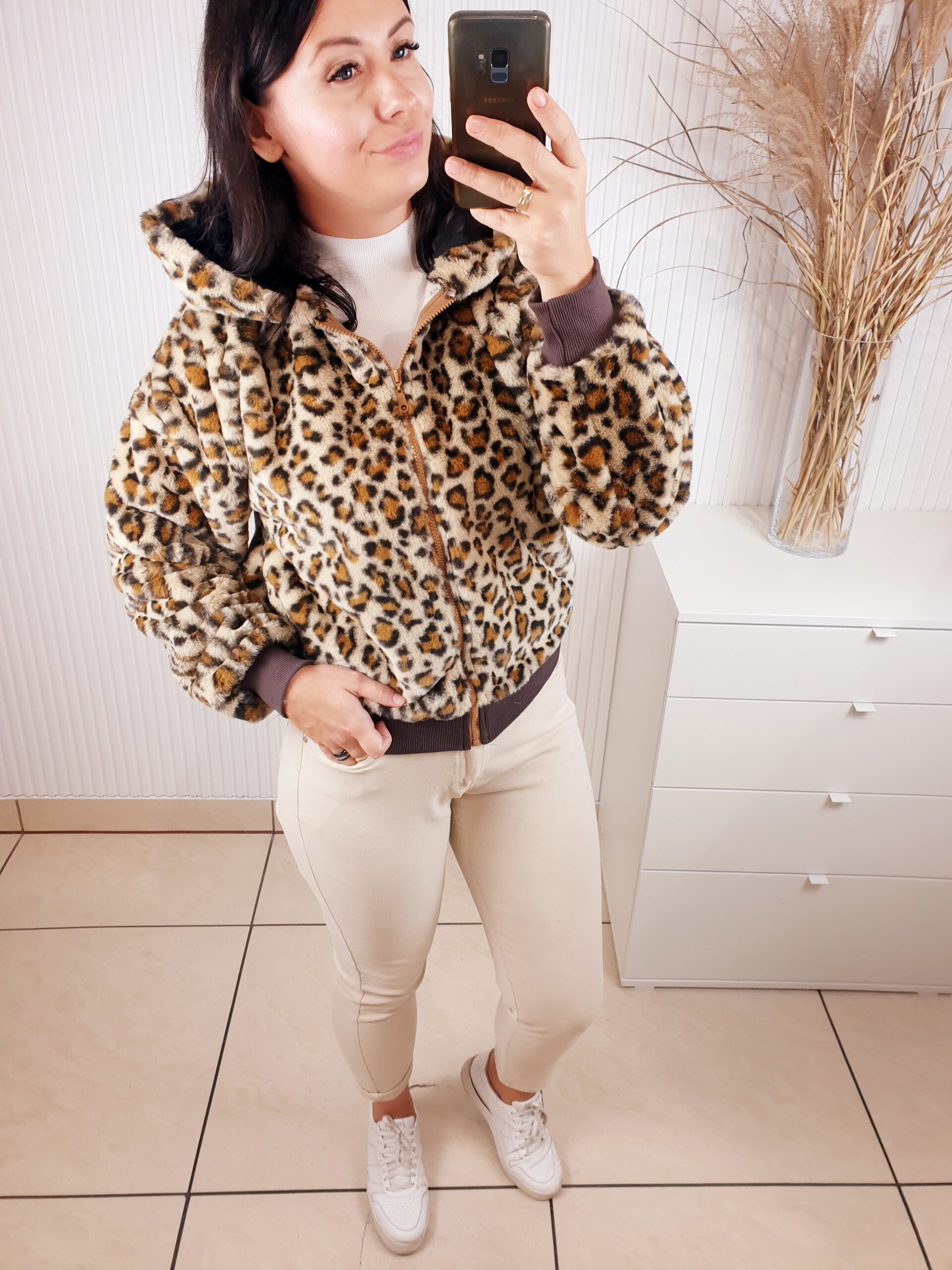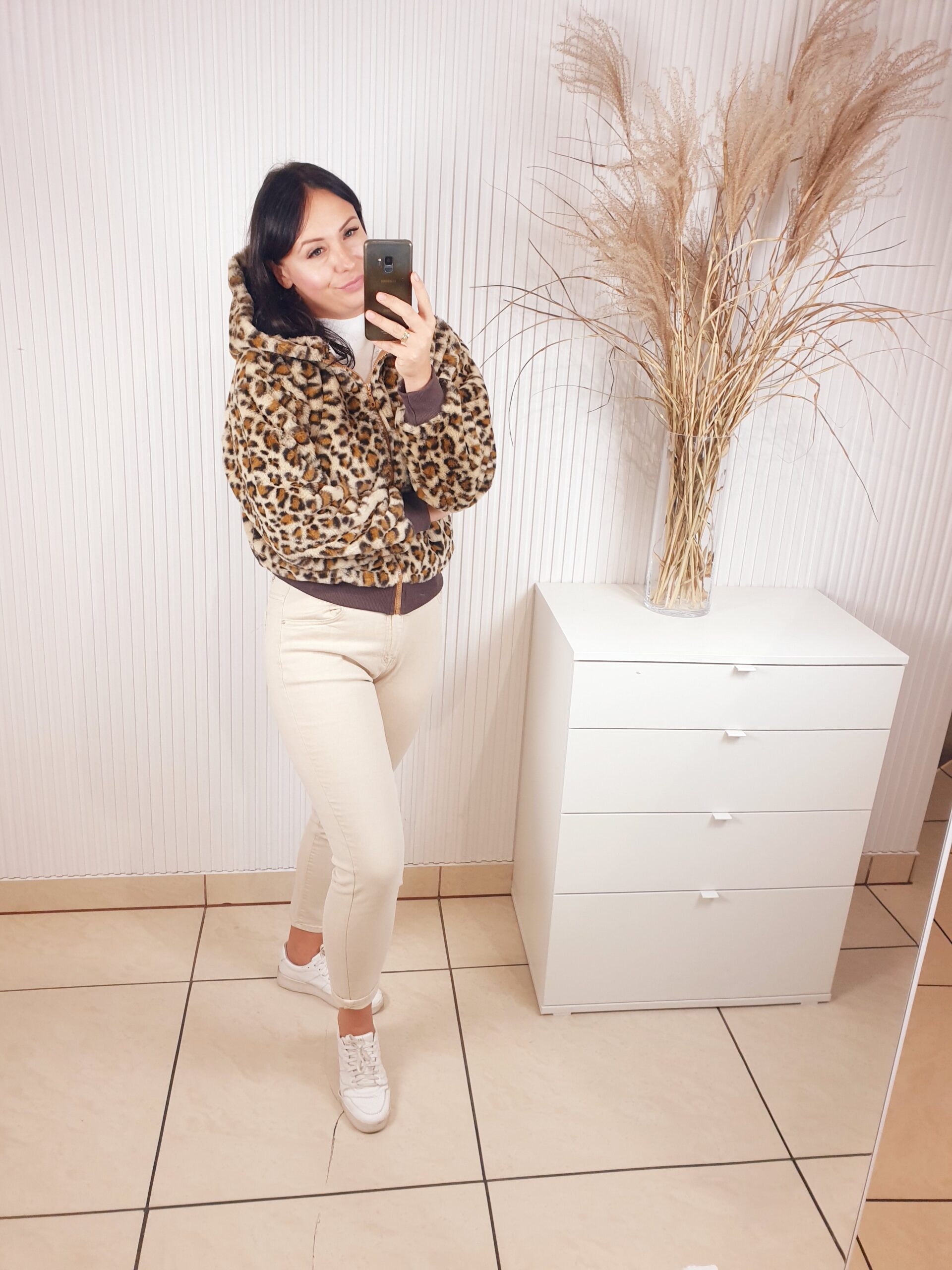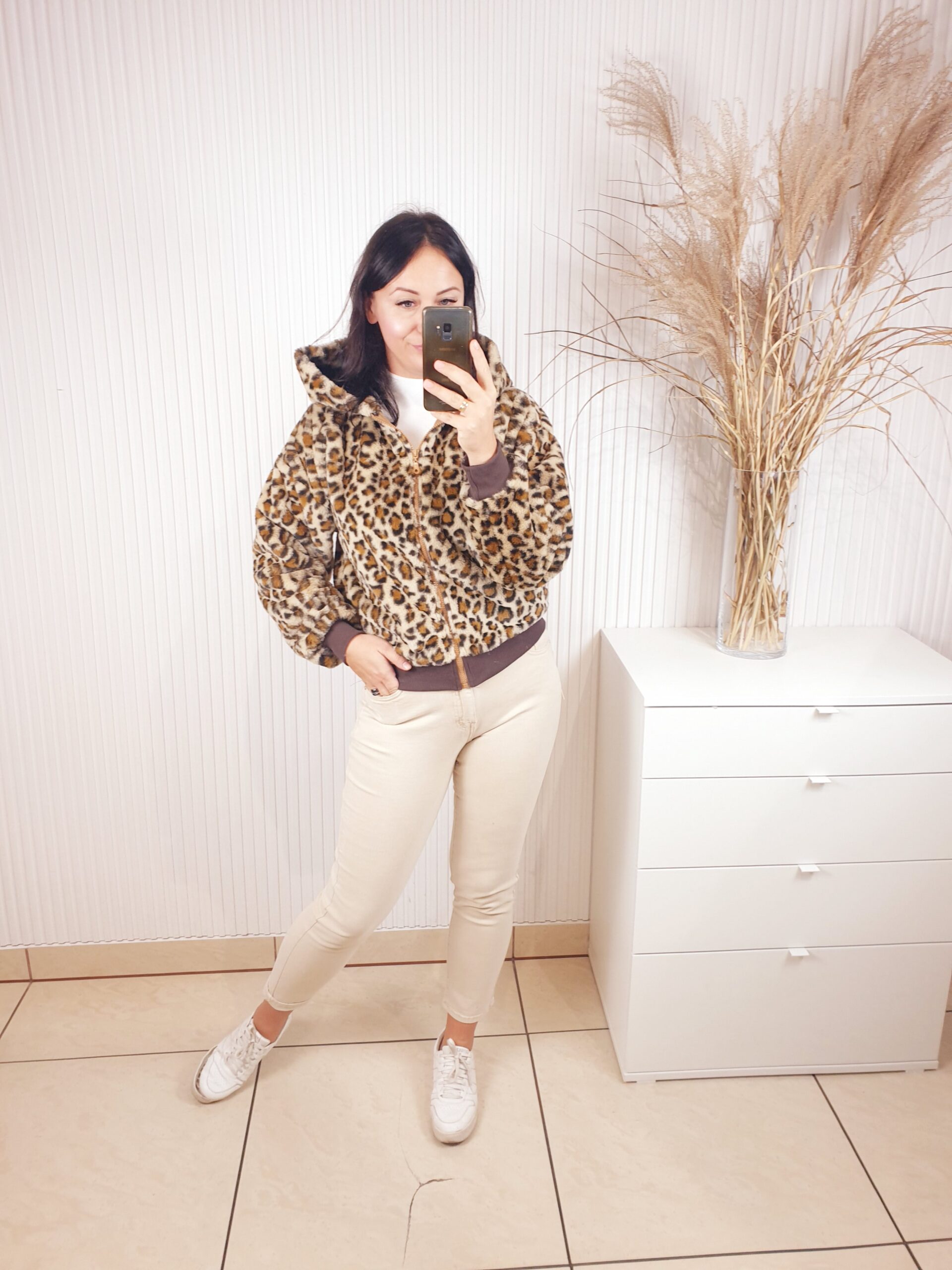 Ciepła bluza zapinana na zamek, posiada kaptur oraz kieszenie z przodu. W oryginalny wzór panterki. Bardzo ciepła, miękka i wygodna w noszeniu. Idealna na chłodniejsze dni.