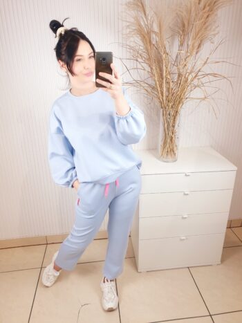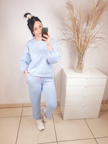 Styl i wygoda w jednym. Ten model łączy w sobie modny design z wyjątkowym komfortem. Materiał idealnie dopasowuje się do sylwetki i jest bardzo przyjemny w dotyku. Pozwól Sobie na ten wyjątkowy komplet, który łączy komfort z wyczuciem trendów i podkreśli Twój styl w każdej stylizacji. Z tym kompletem codzienne outfity będą wyglądać wyjątkowo i oryginalnie.