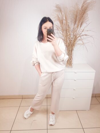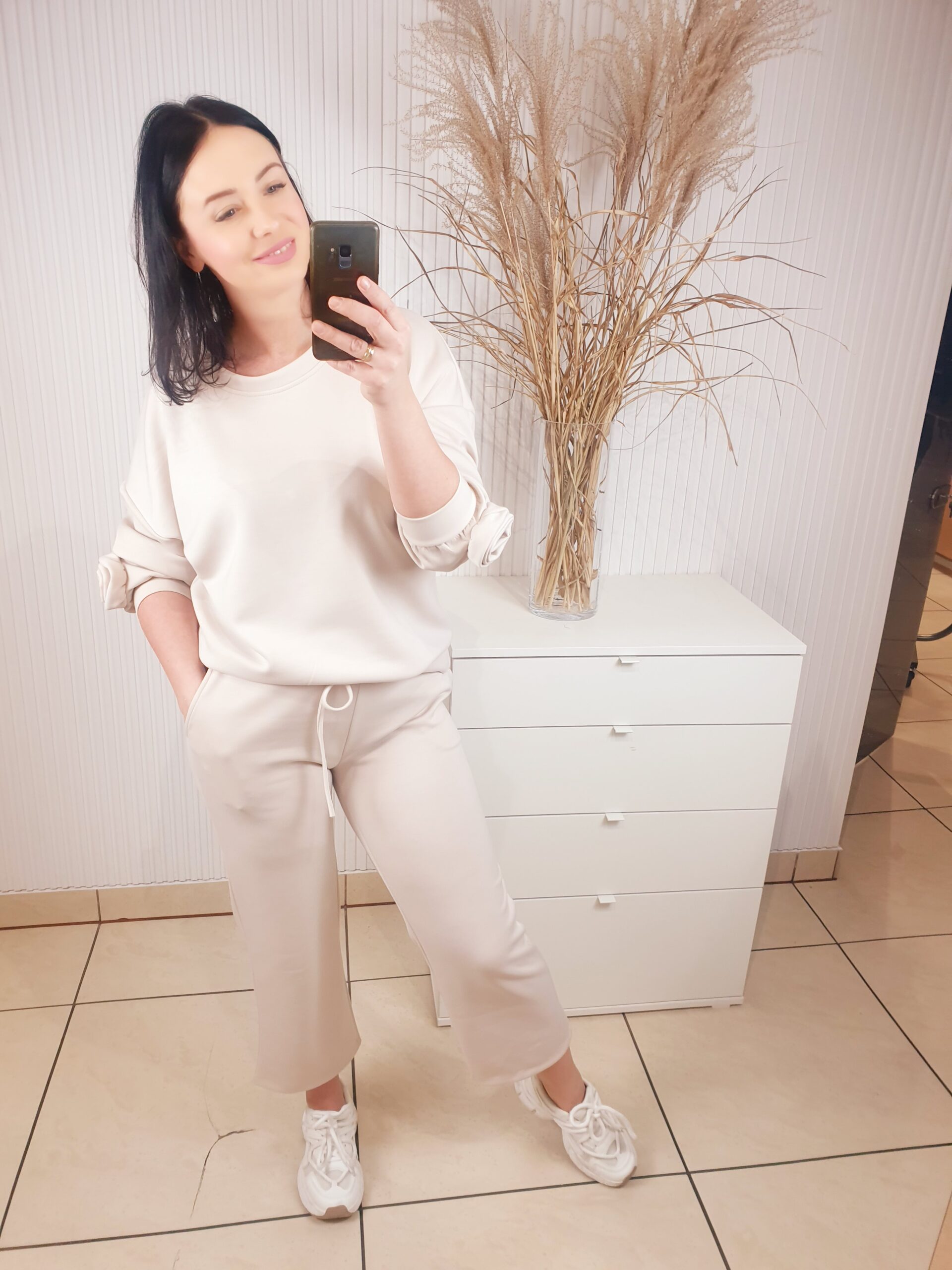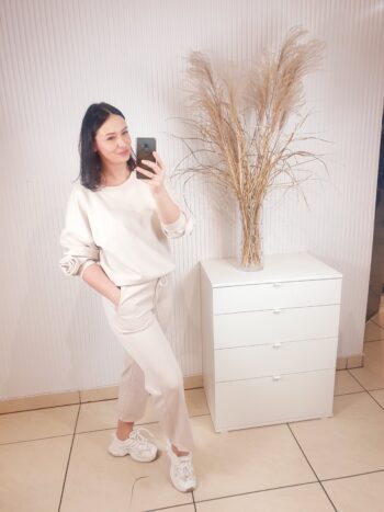 Obłędny, bawełniany komplet, który od pierwszego spojrzenia podbija serca. Idealny dla kobiet, które chcą wyglądać stylowo, czuć się wygodnie i bawić się modą w każdym detalu. Miękki i przyjemny w dotyku materiał sprawia, że poczujesz się w nim komfortowo a dopracowane detale dodadzą mu wyjątkowego charakteru.