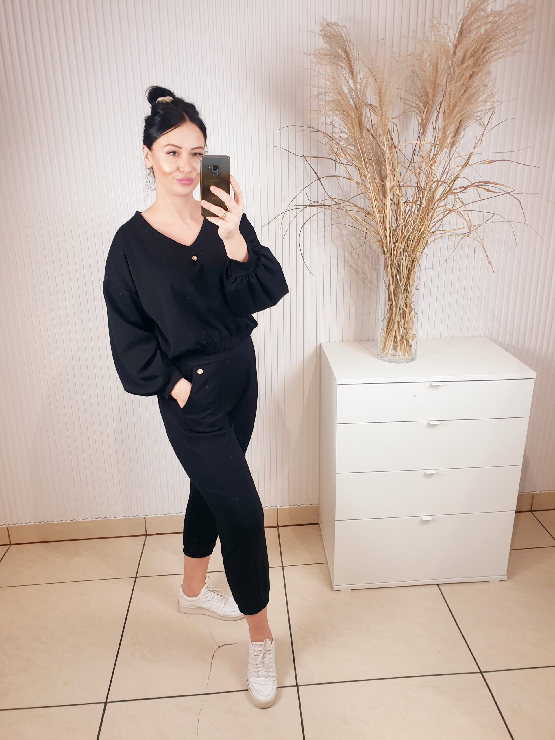 komplet, komplet dresowy damski, czarny, dres damski