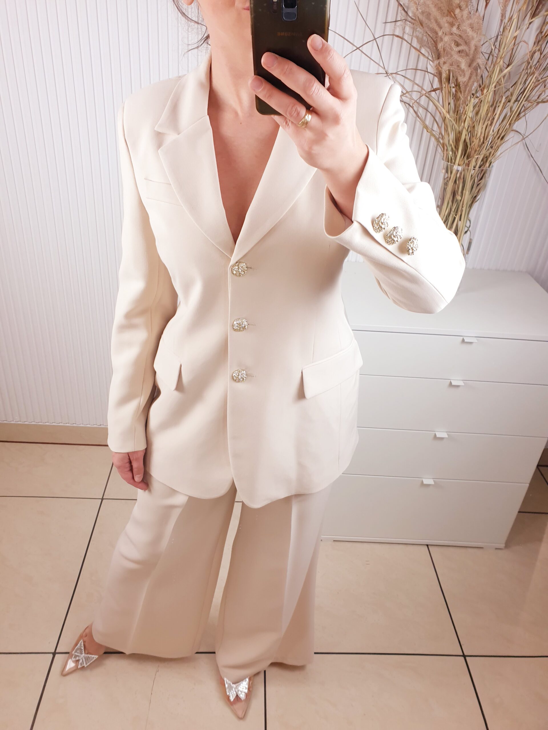 Marynarka to idealny wybór dla kobiet lubiących połączenie klasycznej elegancji z najnowszymi trendami. Ten model sprawi, że w każdej stylizacji będziesz wyglądać elegancko i szykownie. Jej biżuteryjne guziki zagwarantują lekkość i elegancję. Świetny wybór na wyjątkowe okazje.