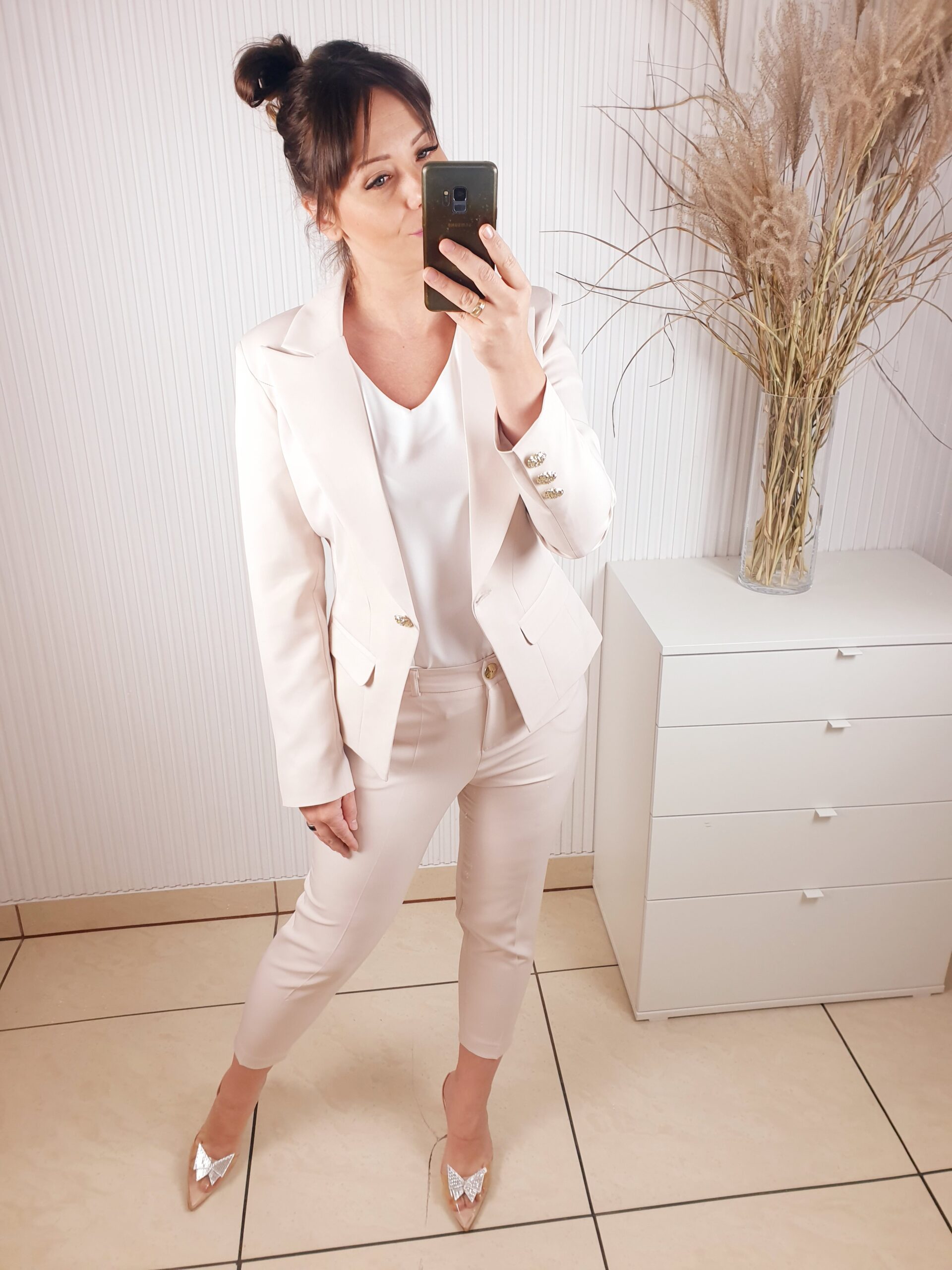 Marynarka to idealny wybór dla kobiet lubiących połączenie klasycznej elegancji z najnowszymi trendami. Ten model sprawi, że w każdej stylizacji będziesz wyglądać elegancko i szykownie. Jej dopasowany fason oraz ozdobne guziki przyciągną spojrzenia. W najmodniejszym kolorze tego sezonu.