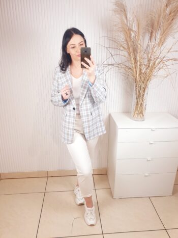 Efektowna marynarka damska to stylowy element garderoby, który przyciąga uwagę oryginalnym wzorem i modnym fasonem. Model w kratkę doskonale wpisuję się w aktualne trendy, podkreślając kobiecy charakter stylizacji. Marynarka Noelsa świetnie sprawdzi się zarówno na co dzień jak i na wyjątkowe okoliczności.