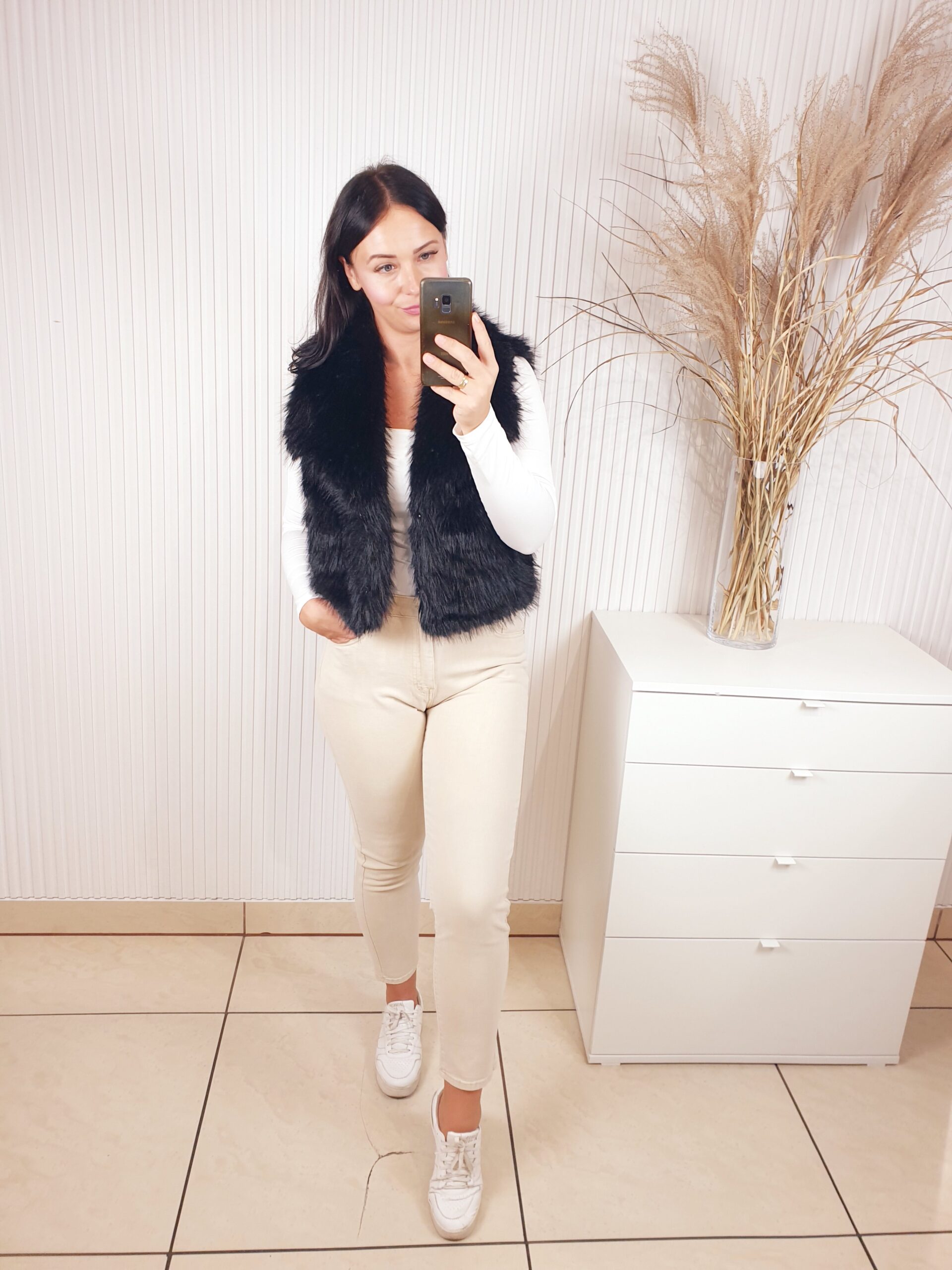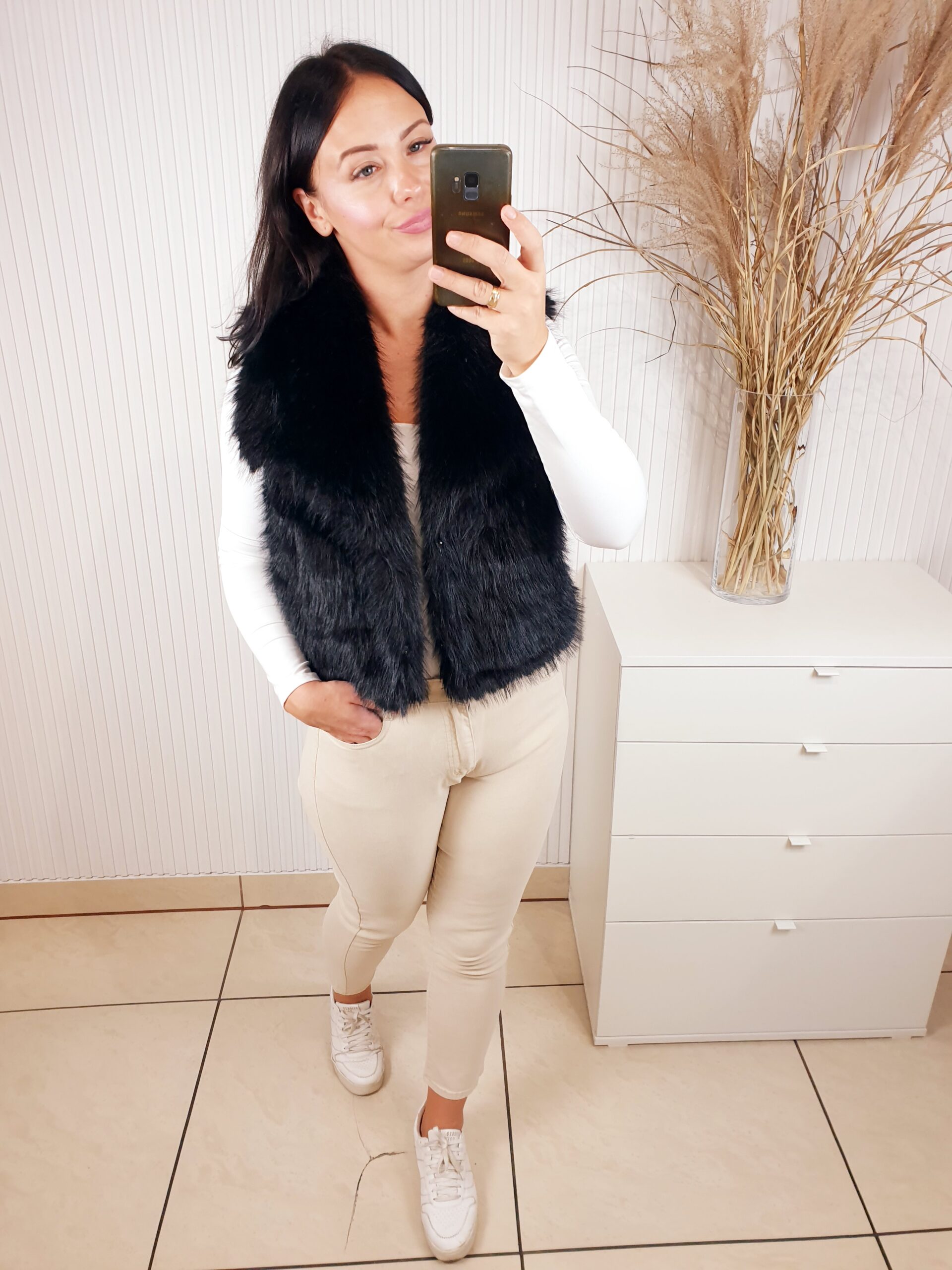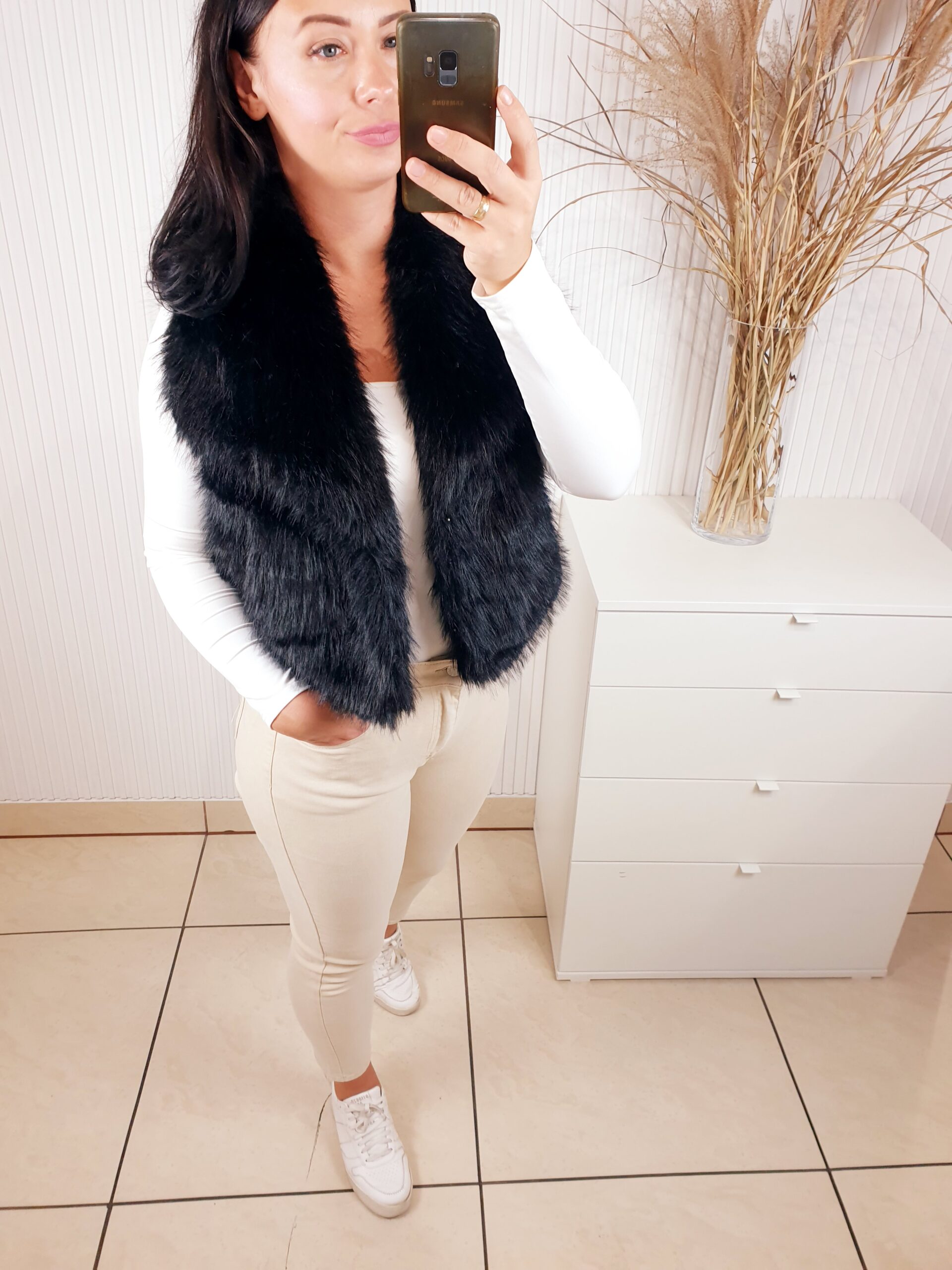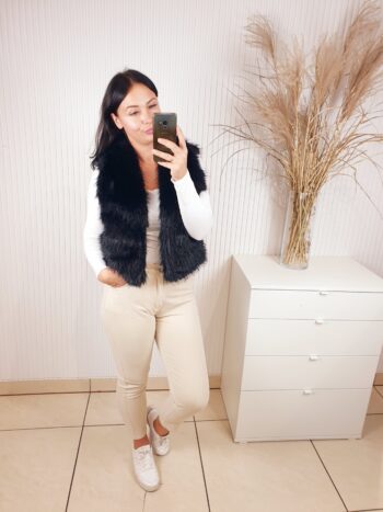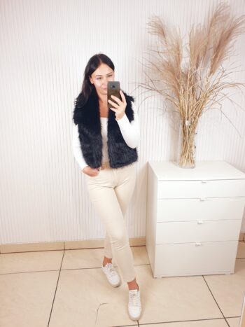 Futrzana kamizelka z kołnierzem oraz dwoma kieszeniami z przodu. Idealna na chłodniejsze dni. Doda charakteru każdej jesiennej stylizacji. Posiada podszewkę. Wygodna i komfortowa w noszeniu.