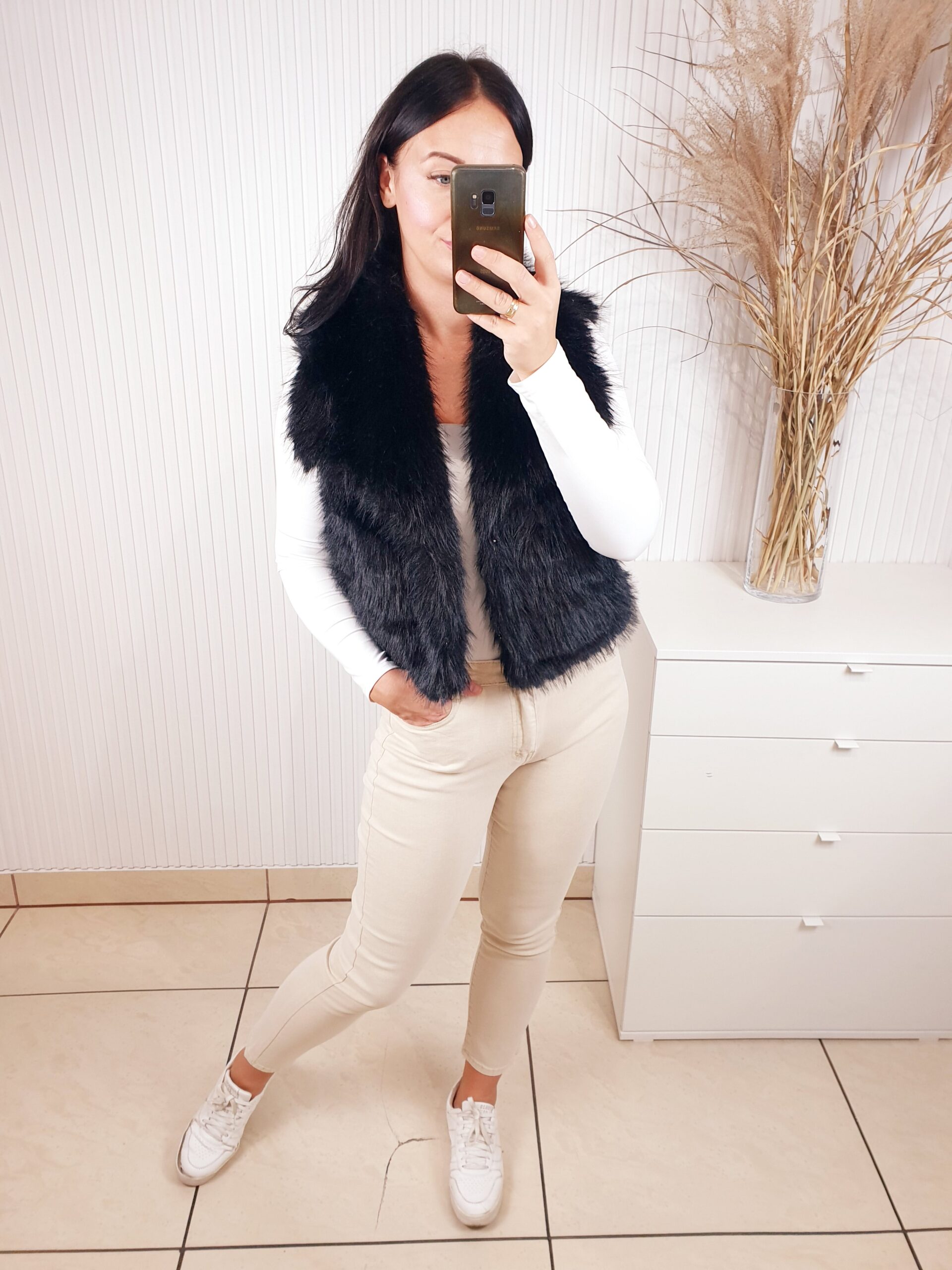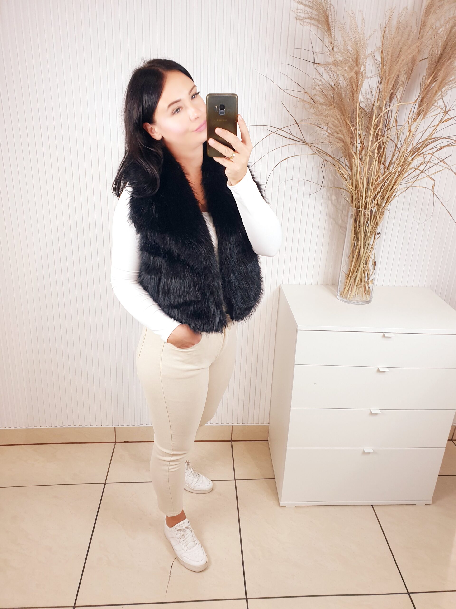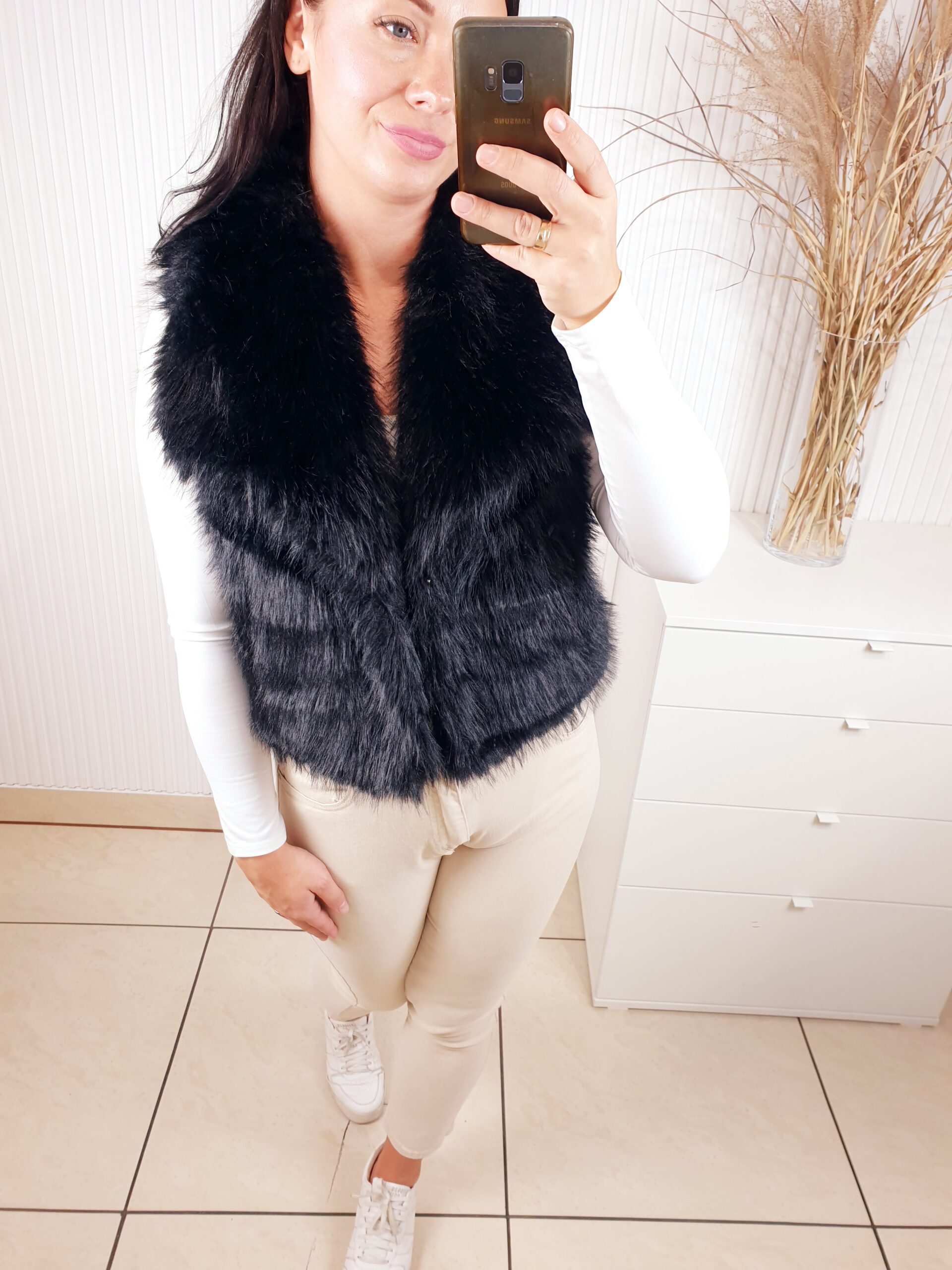 Futrzana kamizelka z kołnierzem oraz dwoma kieszeniami z przodu. Idealna na chłodniejsze dni. Doda charakteru każdej jesiennej stylizacji. Posiada podszewkę. Wygodna i komfortowa w noszeniu.