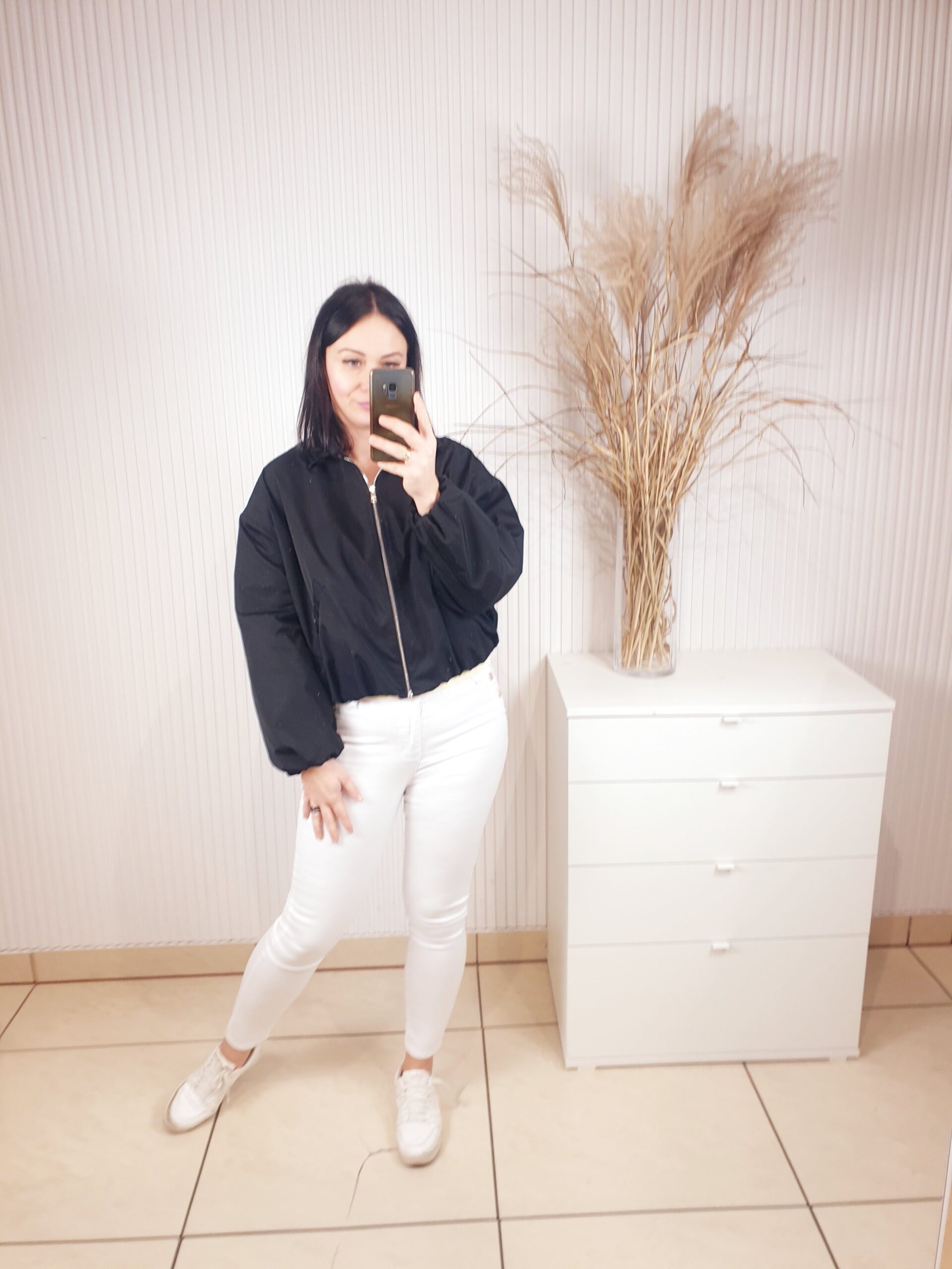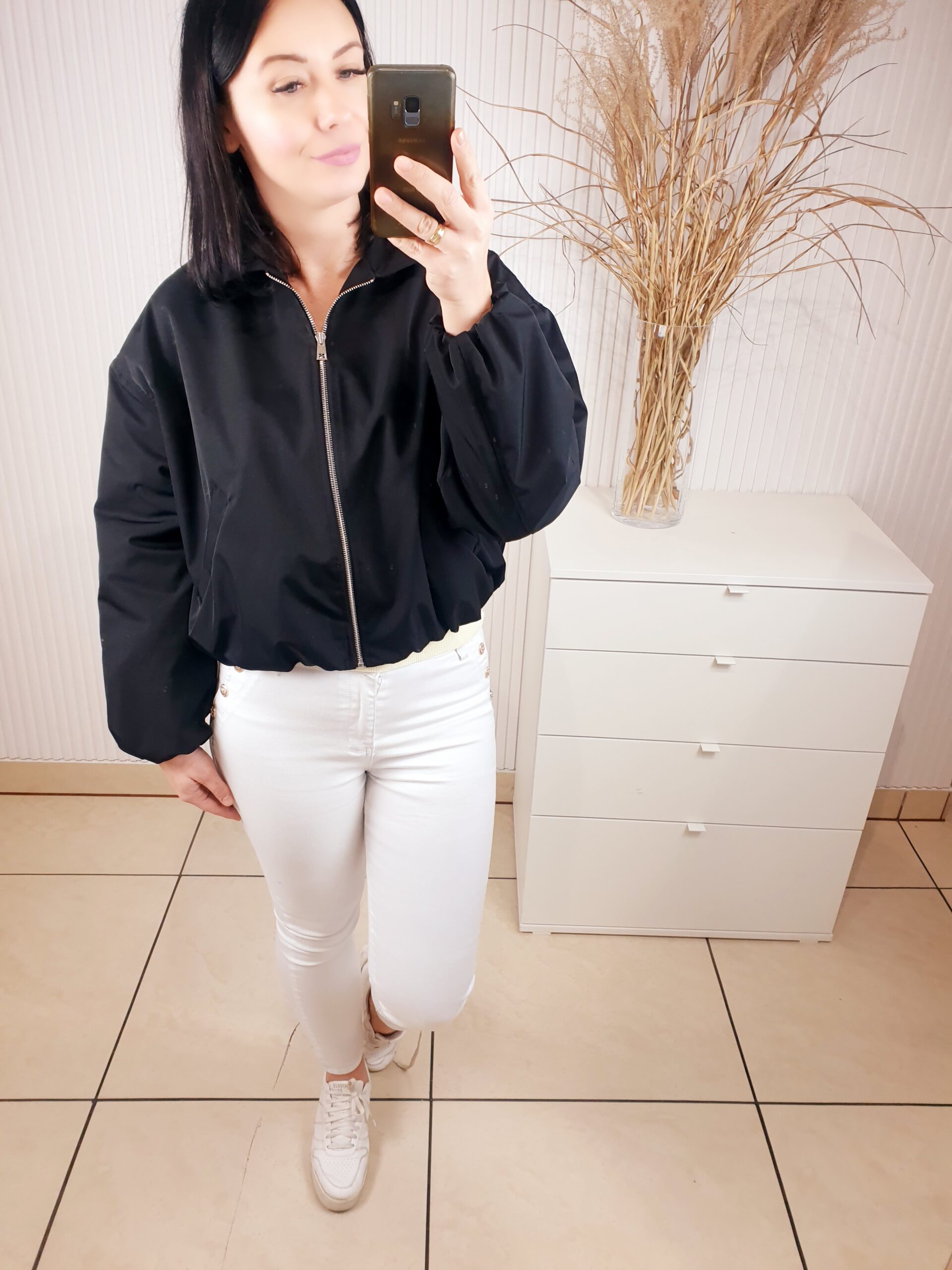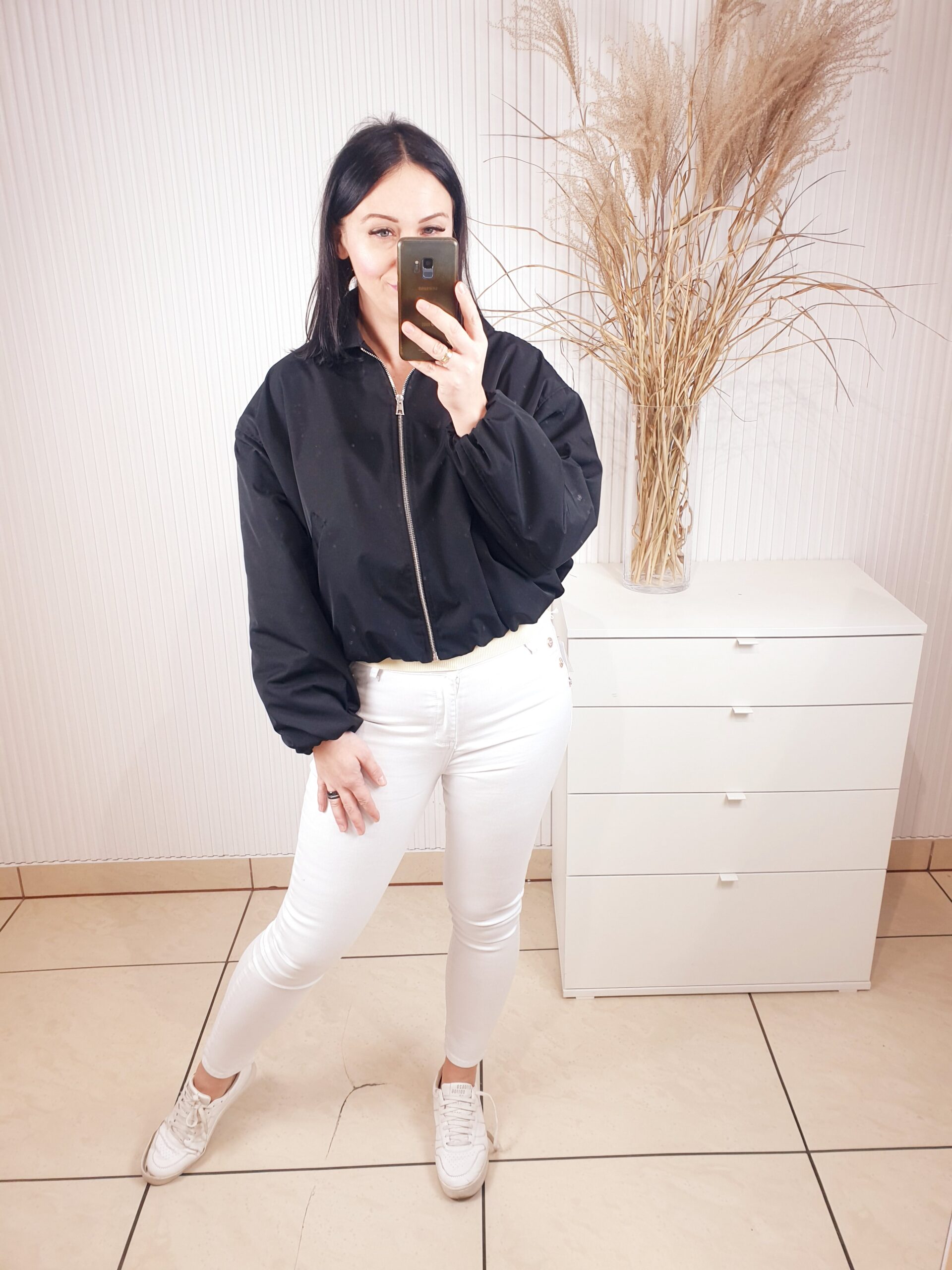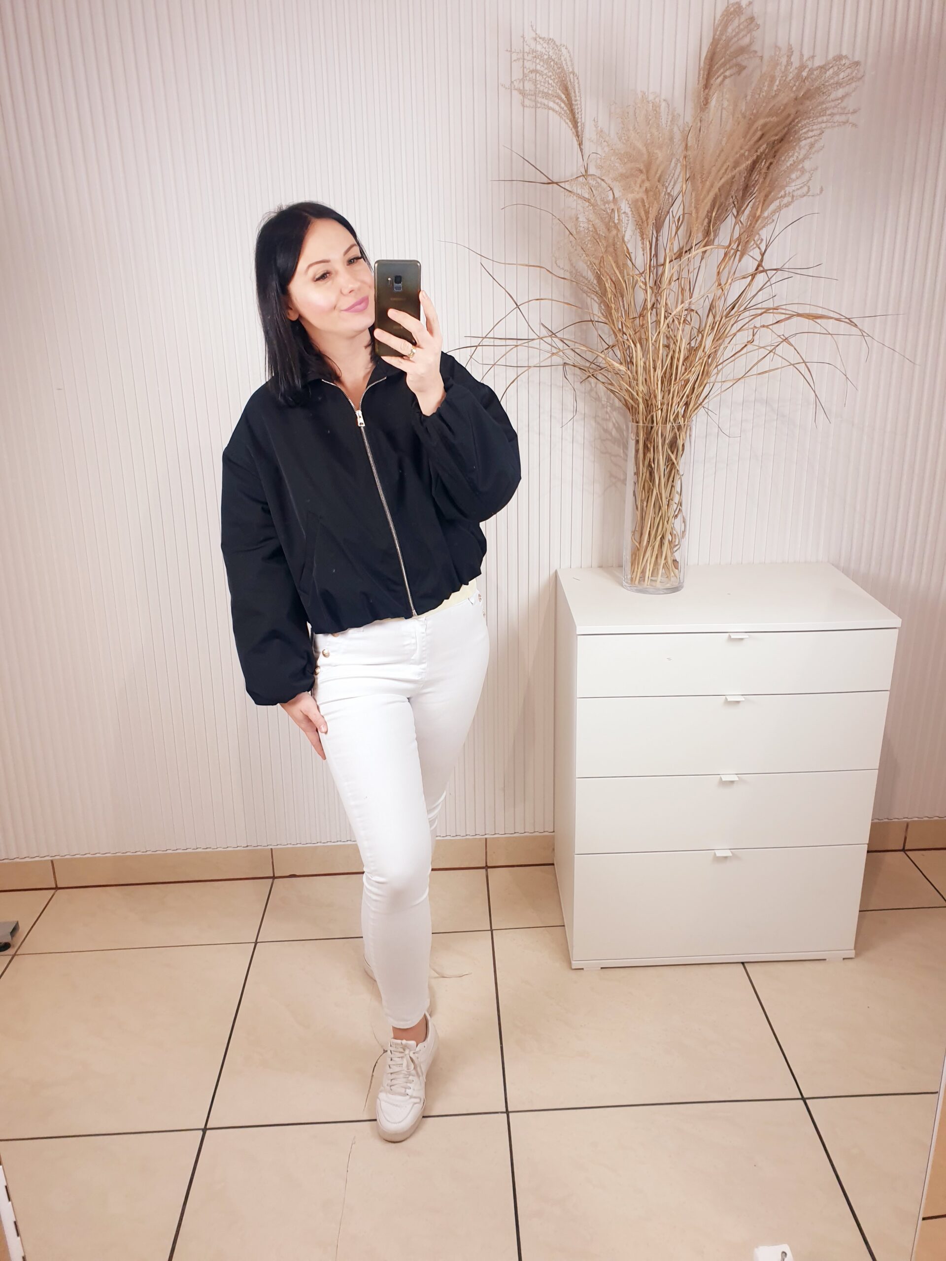 Stylowa i elegancka kurtka o kroju bomberki. Posiada dwie kieszenie po bokach, kołnierzyk, zapinana na srebrny zamek. U dołu oraz na rękawach posiada wszytą gumkę, co powoduje efektowne marszczenie. Idealna na wiosenno-jesienny sezon przejściowy.