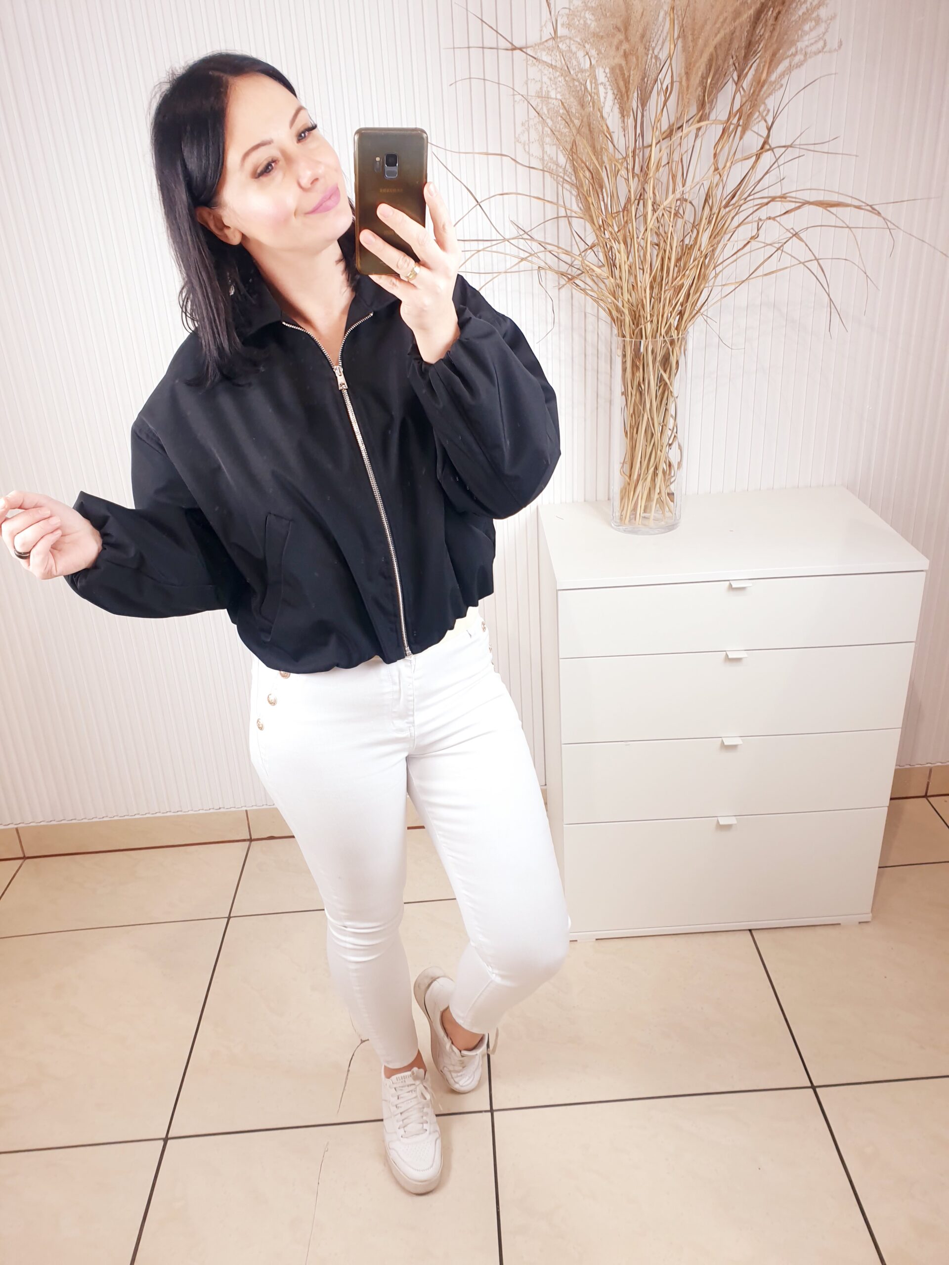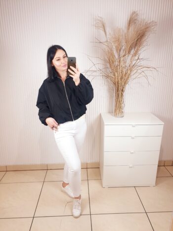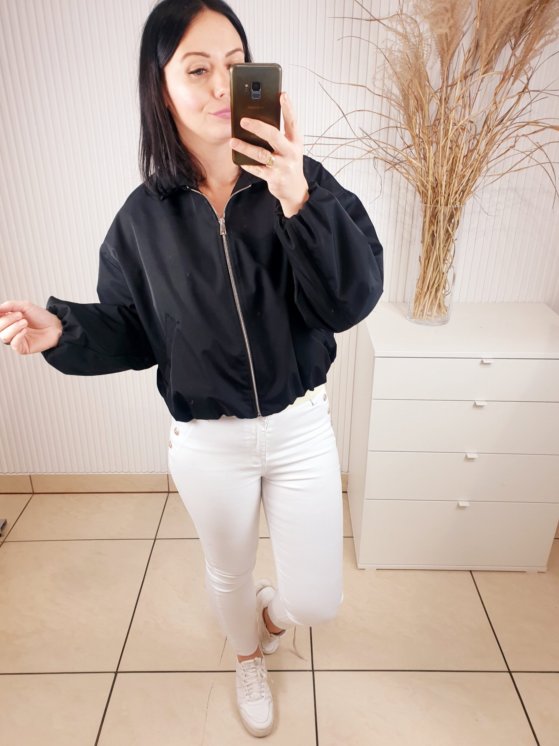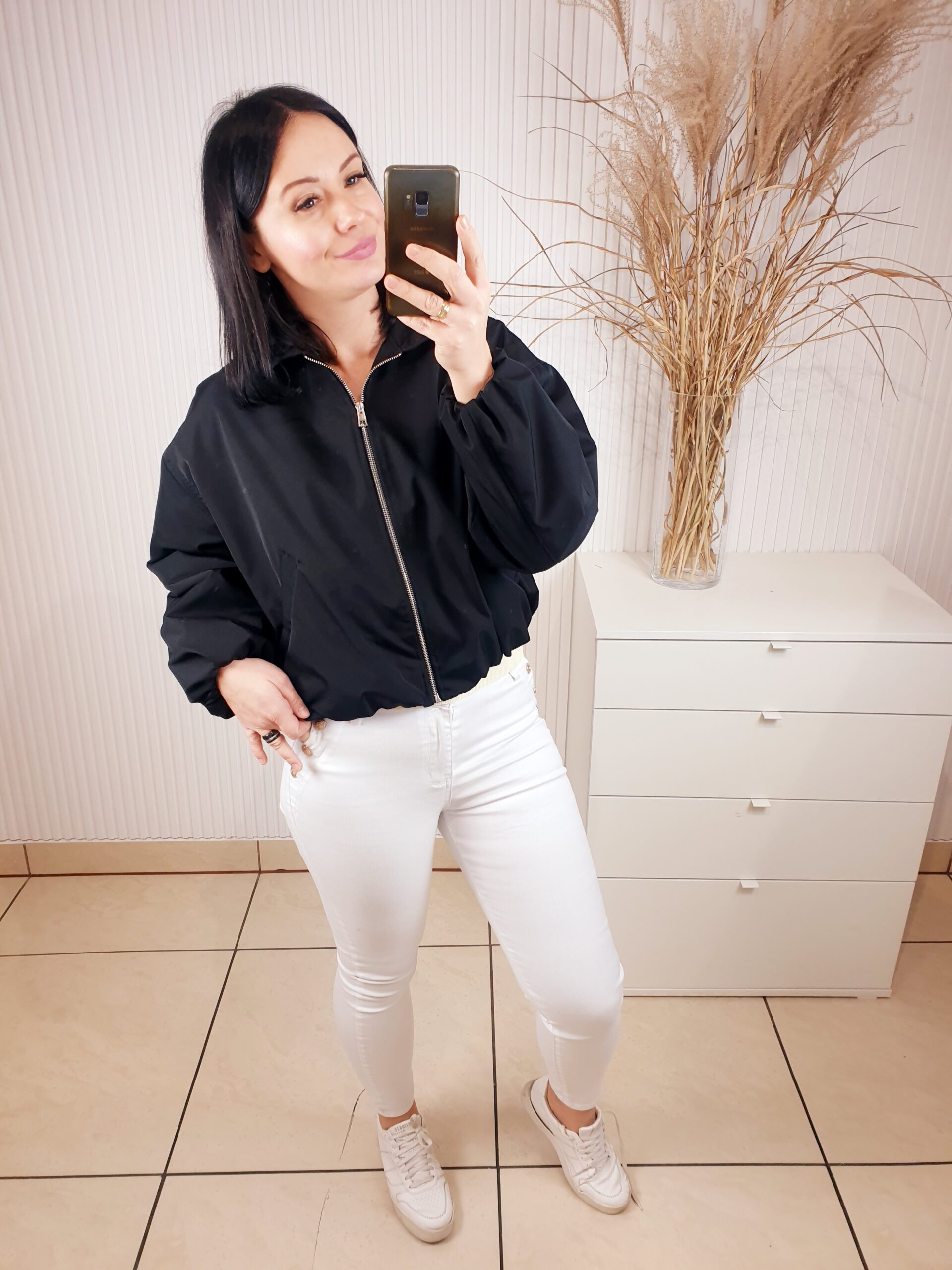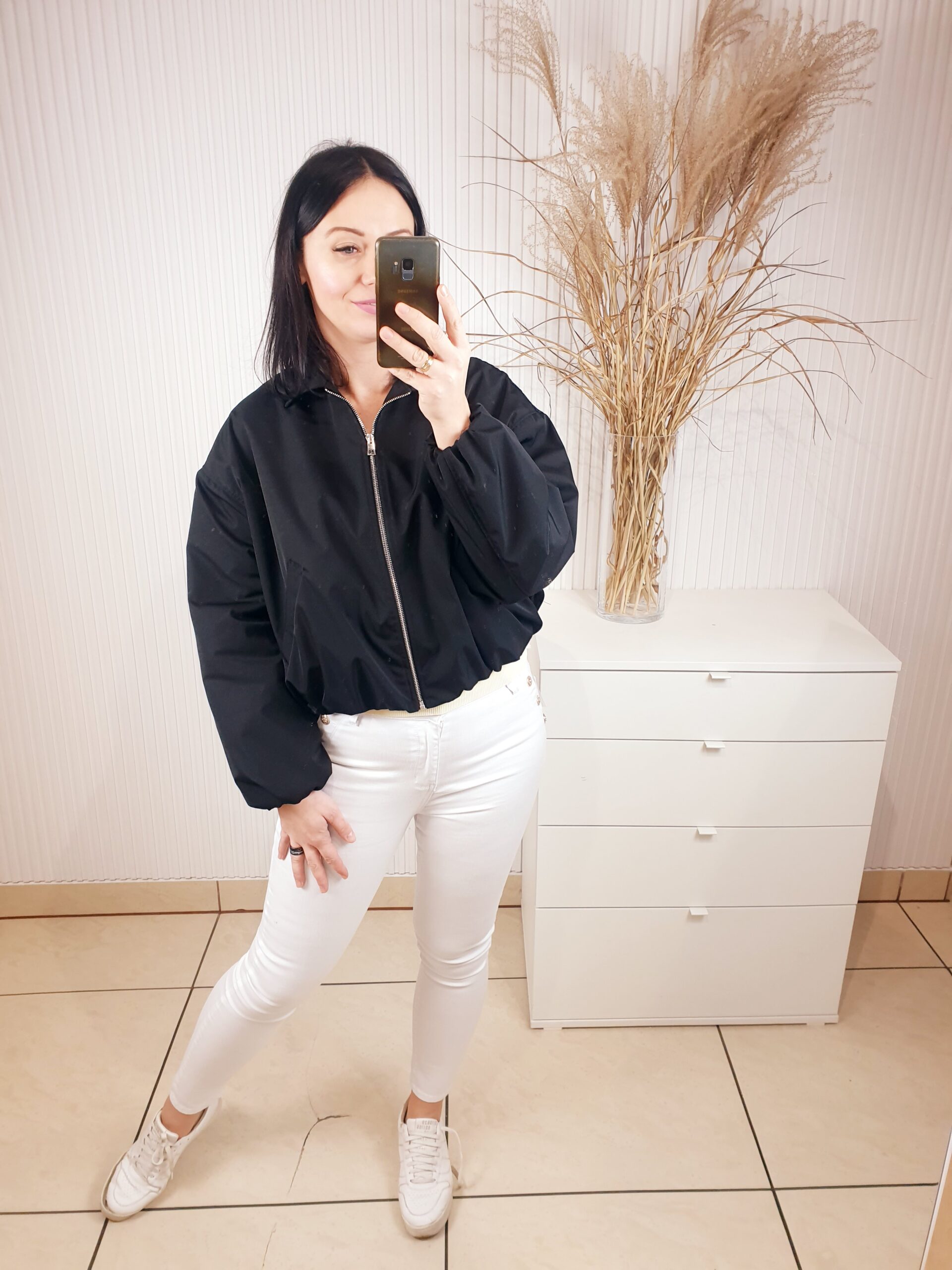 Stylowa i elegancka kurtka o kroju bomberki. Posiada dwie kieszenie po bokach, kołnierzyk, zapinana na srebrny zamek. U dołu oraz na rękawach posiada wszytą gumkę, co powoduje efektowne marszczenie. Idealna na wiosenno-jesienny sezon przejściowy.