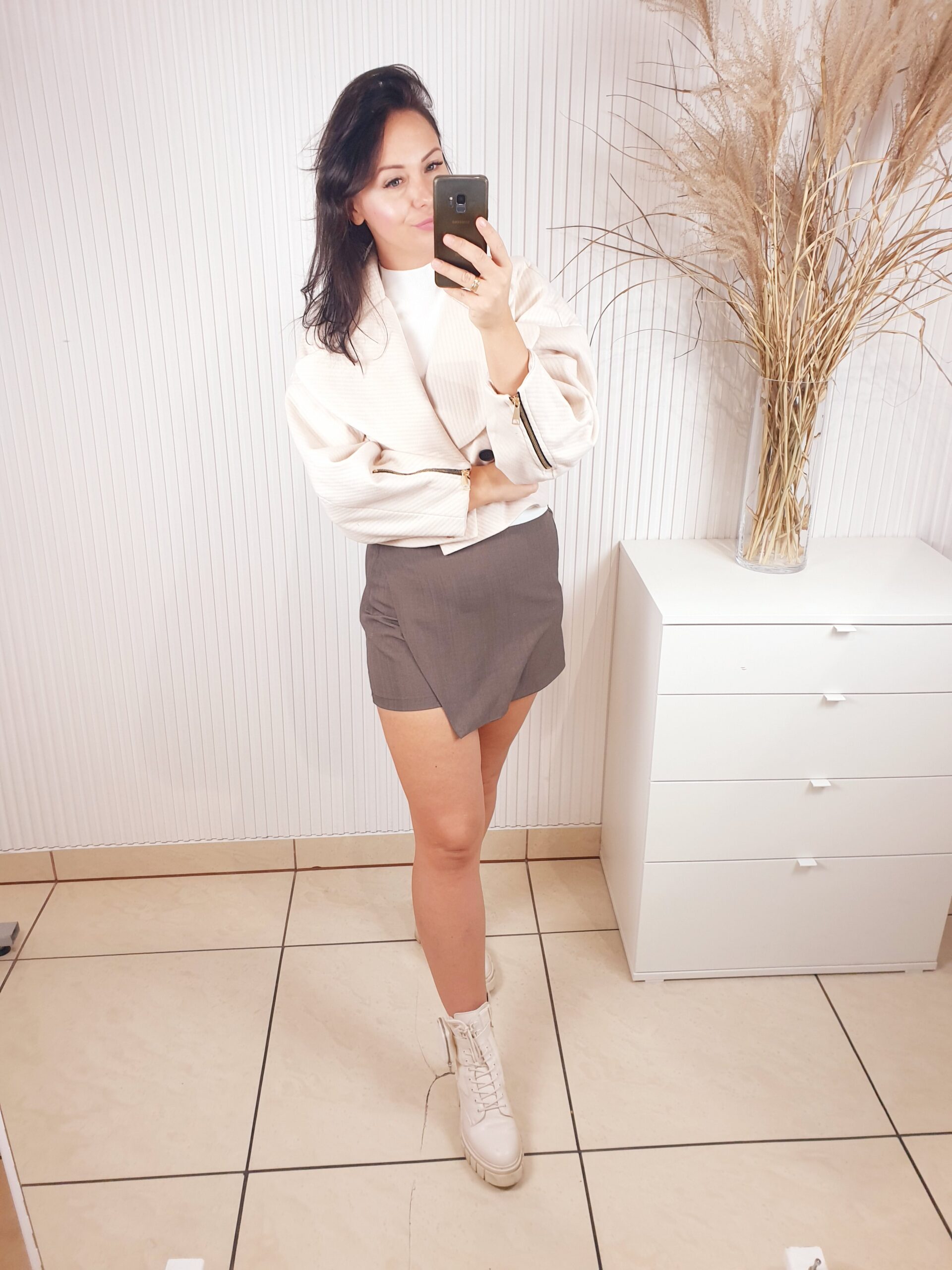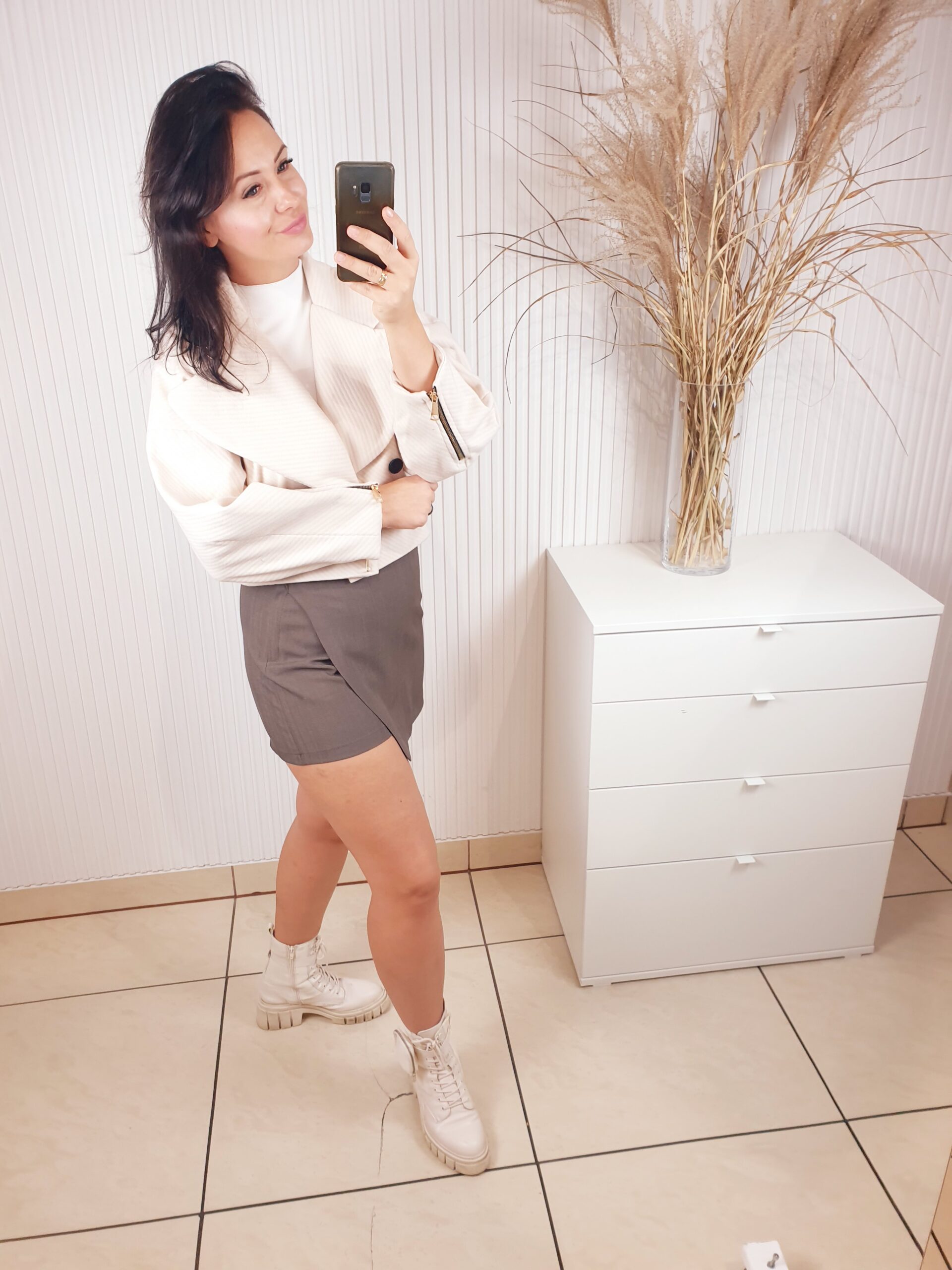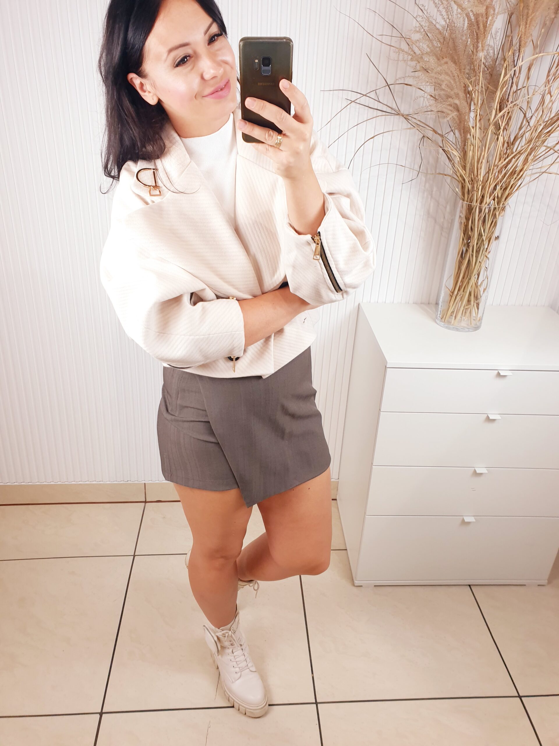 Stylowa, krótka kurtka do pasa, zaprojektowana z myślą o kobietach ceniących elegancję i wyjątkowy styl. Posiada szerokie rękawy, które zakończone są efektownym marszczeniem. Na dole zapięcie na dwa guziki, efektowny kołnierz ze złotą broszką.Rozmiar uniwersalny.