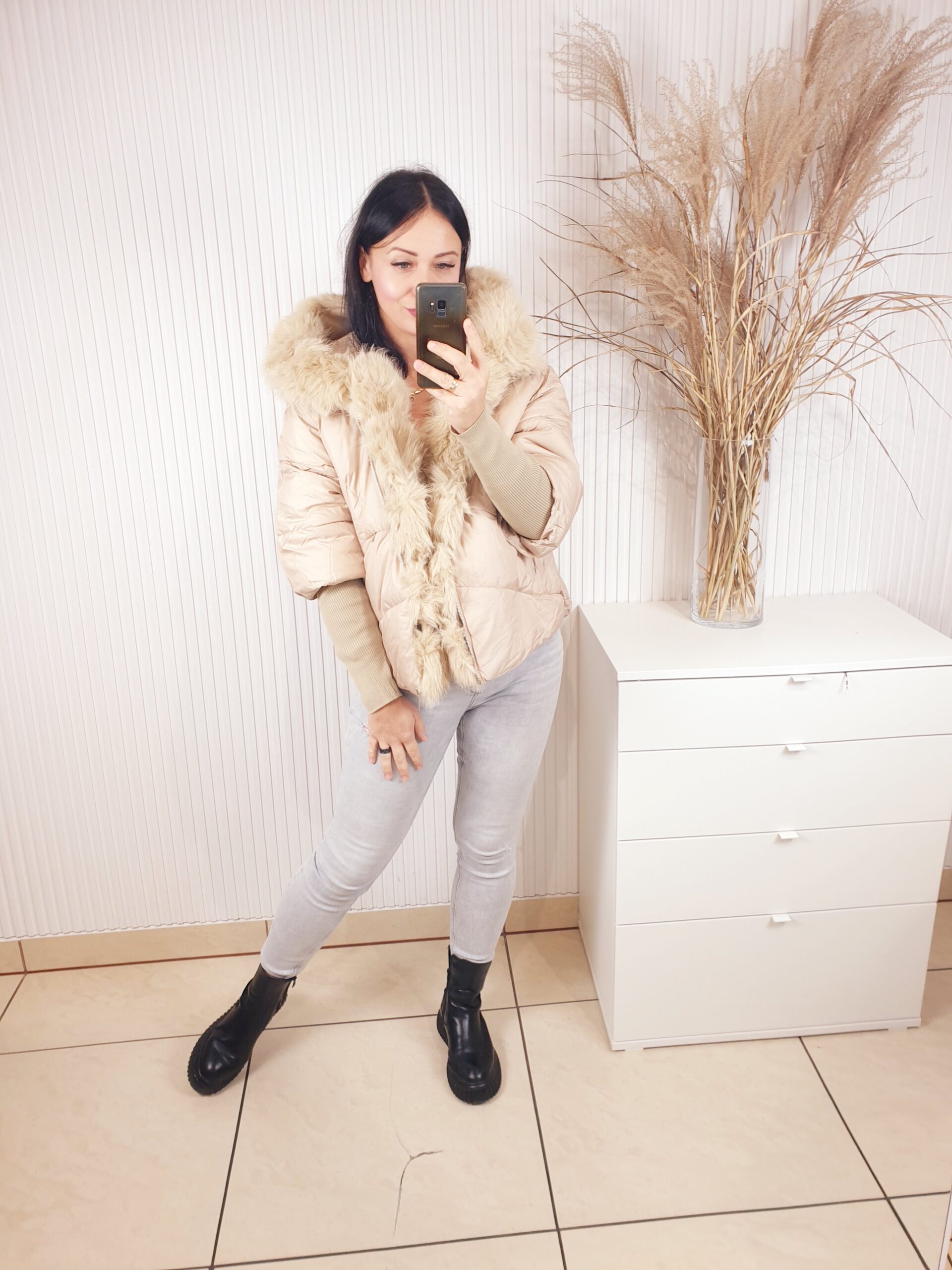 Zimowa kurtka, w odcieniu jasnego beżu oraz czerni. Posiada ściągacze przy rękawach, kaptur, dwie kieszenie z przodu oraz cudowne futerko. Nietuzinkowa i bardzo oryginalna, a przy tym bardzo wygodna i komfortowa.
