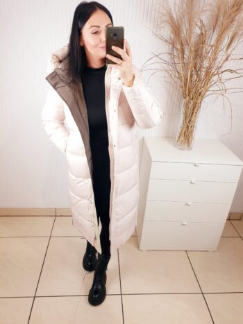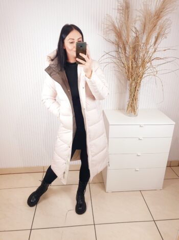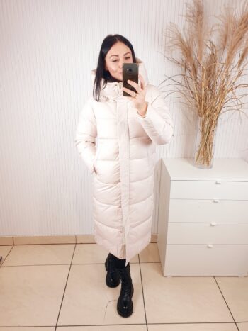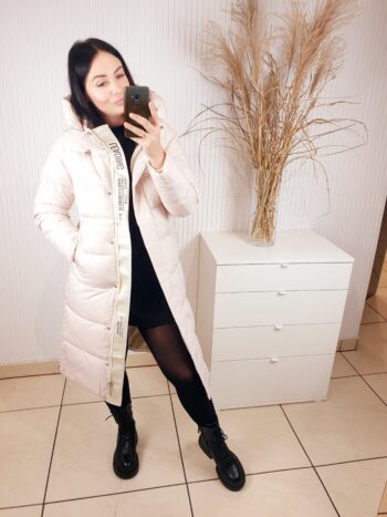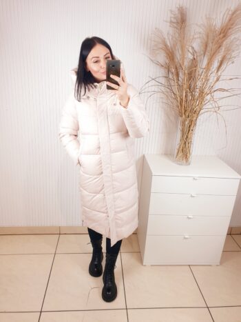 Ciepła, długa i wyjątkowo stylowa- kurtka, która sprawi, że zima stanie się Twoim ulubionym sezonem. Otuli Cię miękkością i ochroni przed chłodem, nie tracąc przy tym kobiecego charakteru. Dzięki pikowanej strukturze, wysokiemu kołnierzowi i dużemu kapturowi, zapewnia maksymalny komfort nawet w mroźne dni. To model, który łączy modę z funkcjonalnością- idealny do miejskich stylizacji i codziennego noszenia.