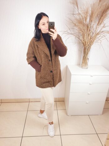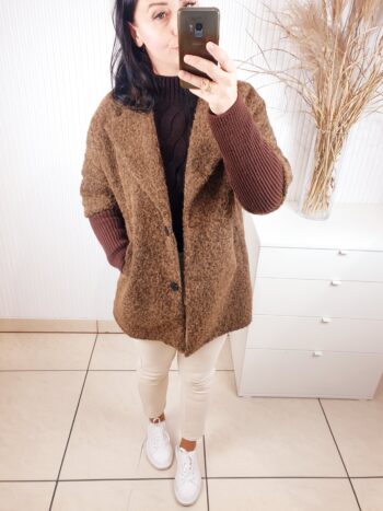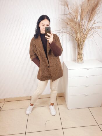 Płaszcz damski który nie tylko chroni przed zimnem, ale także dodaje klasy i elegancji każdej stylizacji. Wykonany z wysokiej jakości materiałów. Unikatowy rękaw oraz zapinanie na guziki, stanowią nie tylko praktyczny element, ale również designerski detal. Wykonany na podszewce, idealny na sezon przejściowy.
