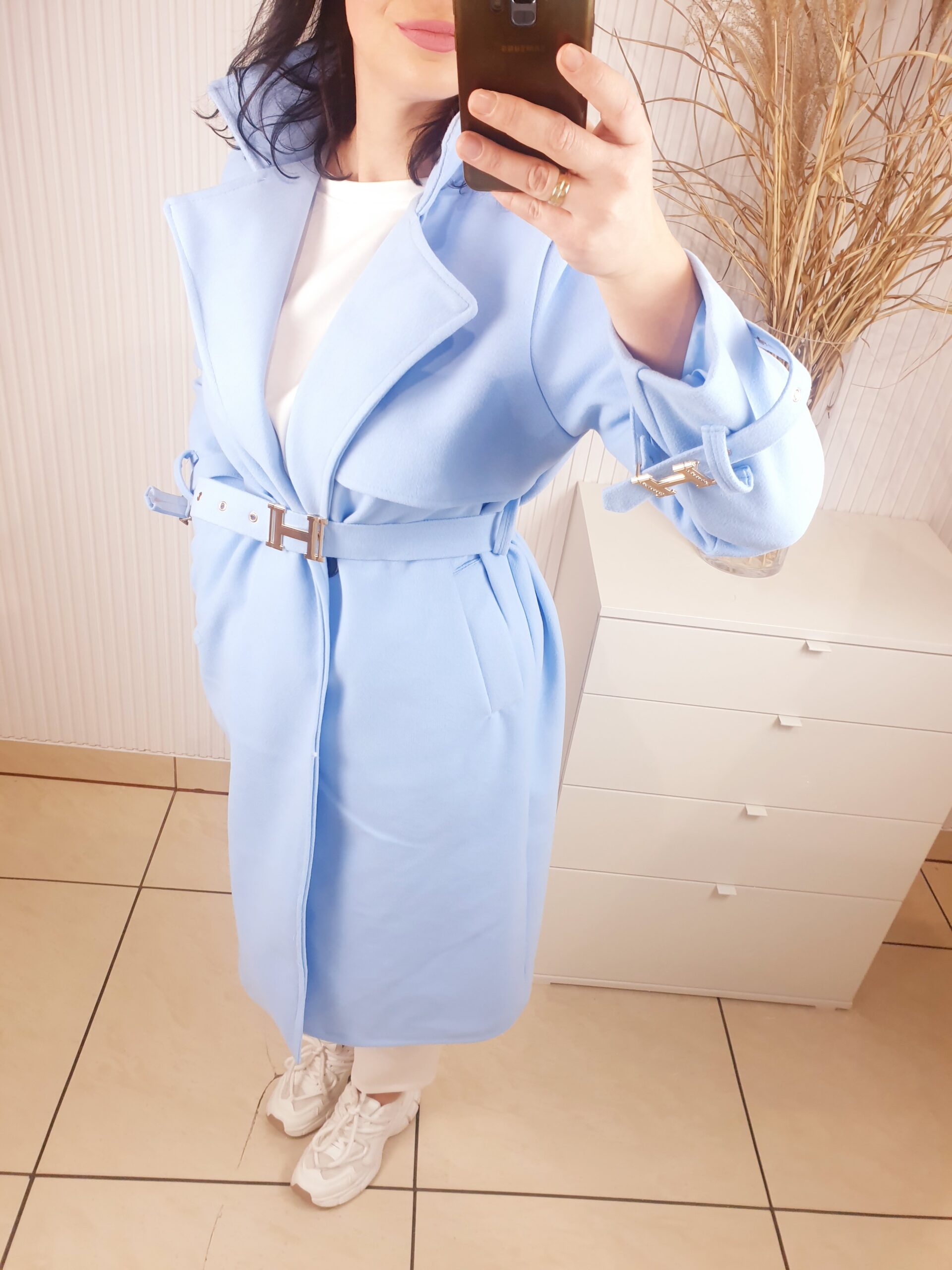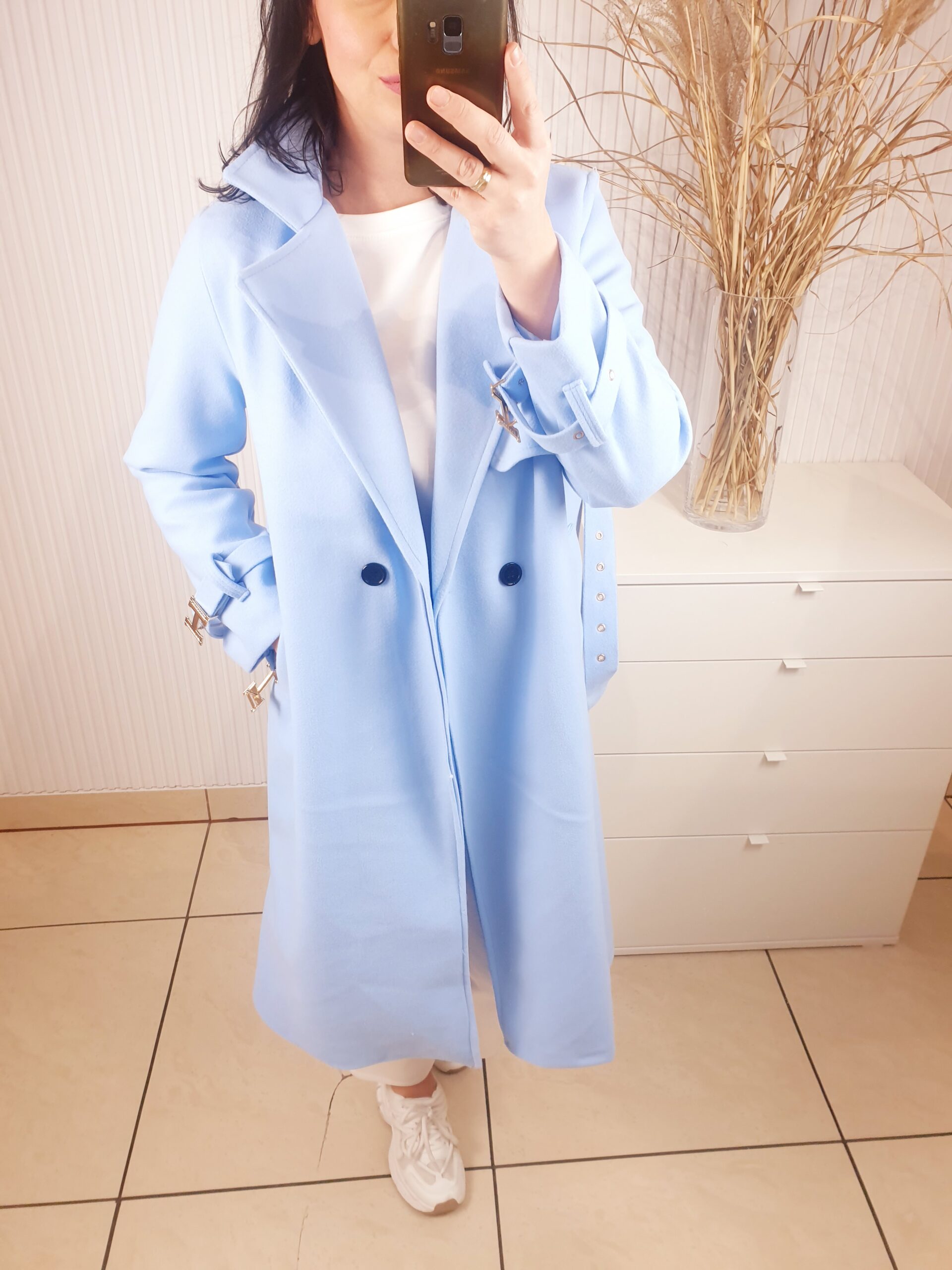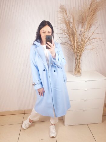 Nieziemski płaszcz w przepięknym błękitnym kolorze, już od pierwszego spojrzenia przywołuje najwyższą jakość. To model dopasowany w każdym detalu, z wyjątkowym krojem i wykończeniem,które robią spektakularne wrażenie. Klasa sama w sobie i absolutny must have w Twojej garderobie.