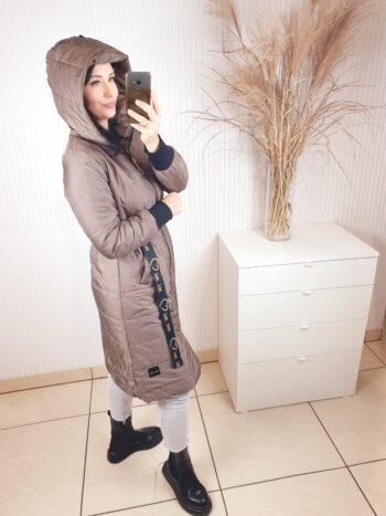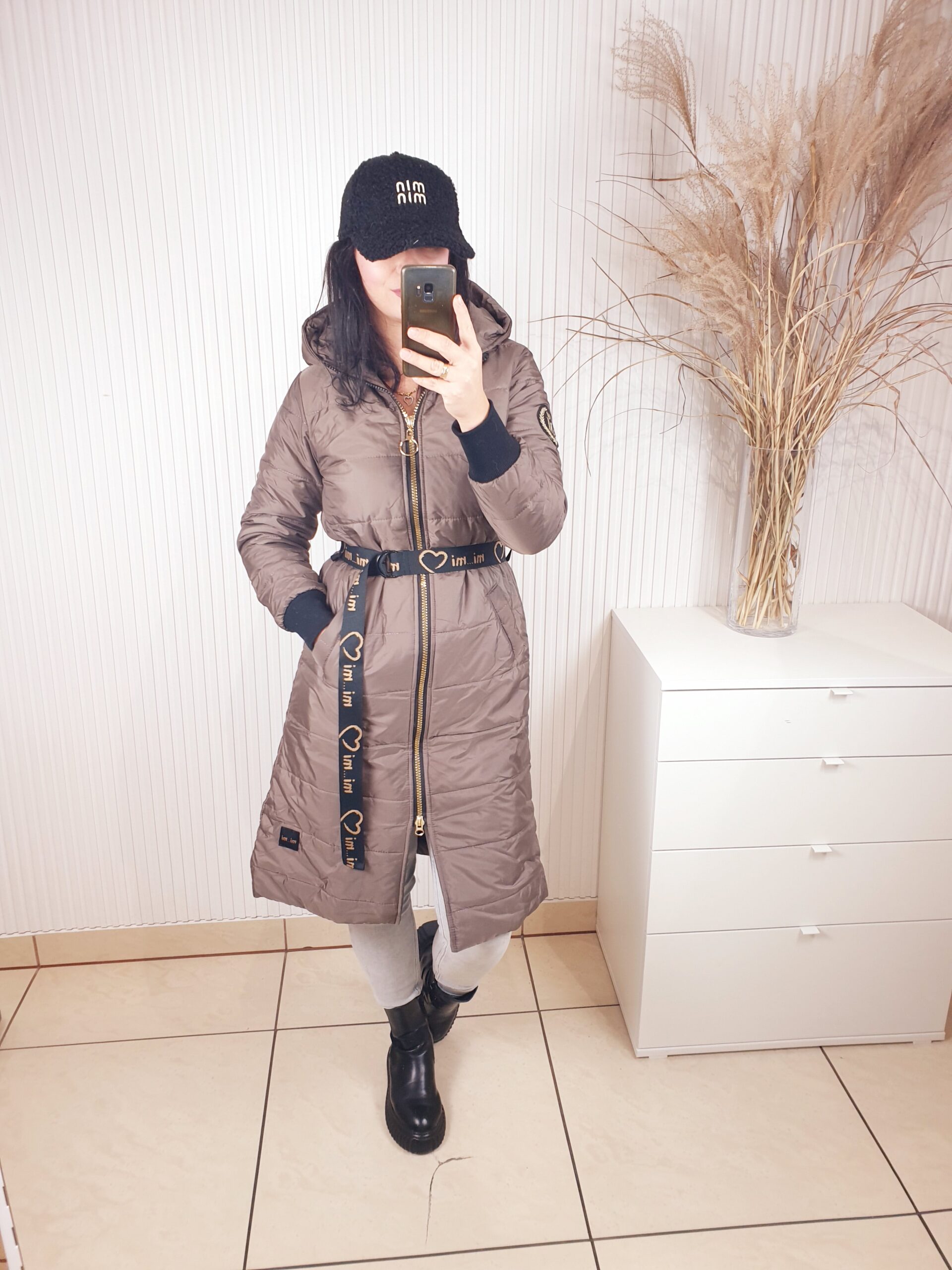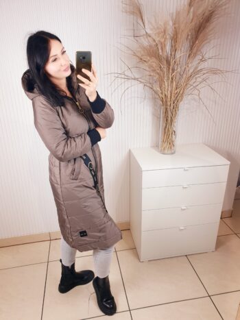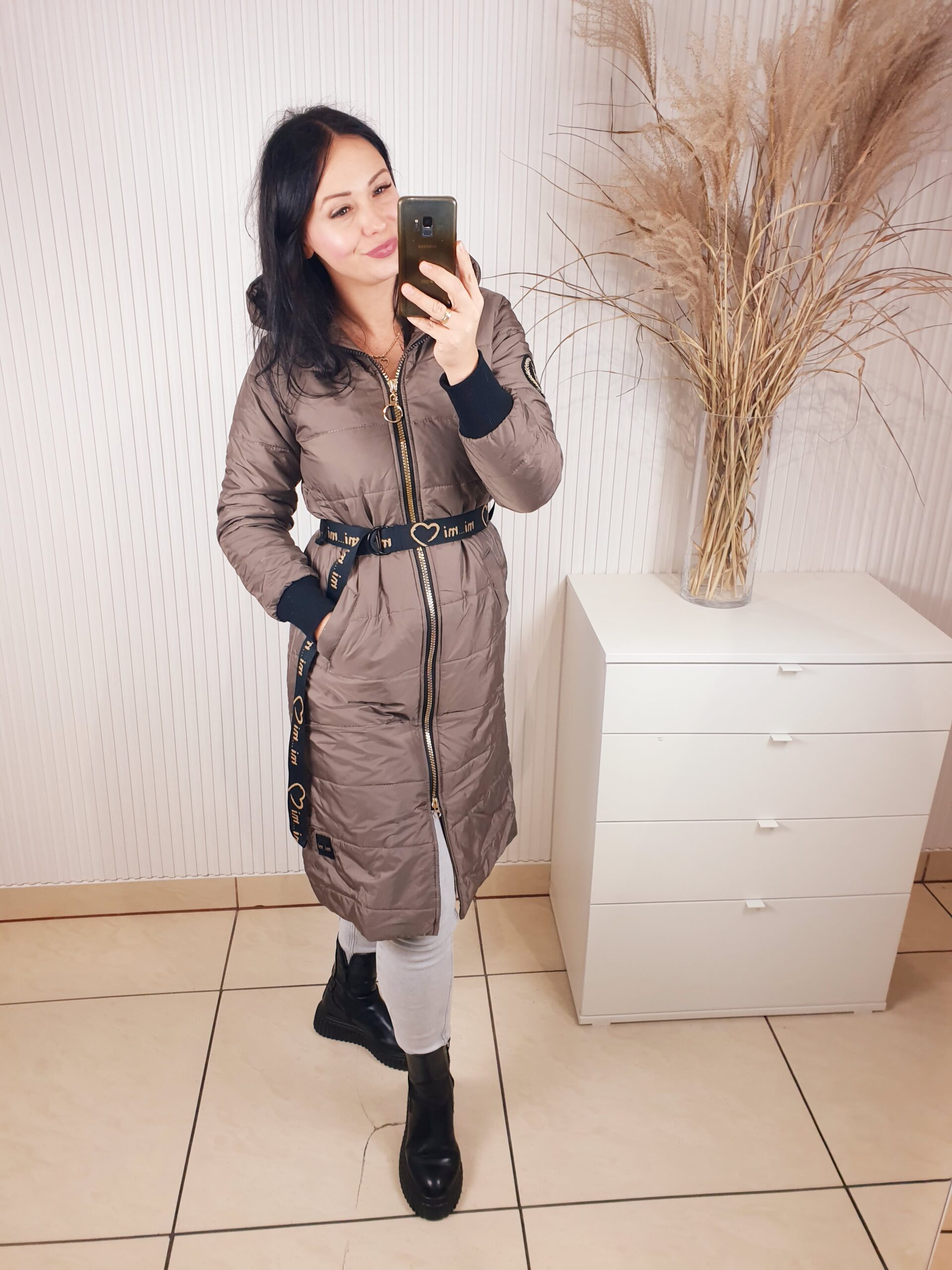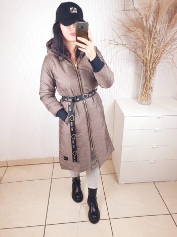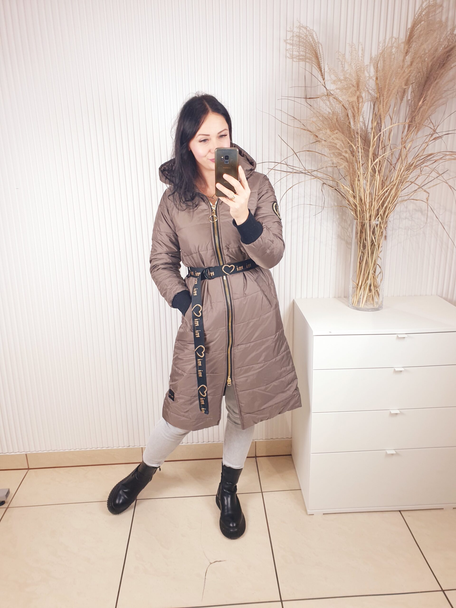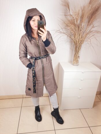 Cudowna kurtka w stylu płaszczyka, ocieplana, z kapturem. Długi krój wysmukli sylwetkę, pasek podkreśli talię. W tej kurtce będziesz wyglądać elegancko, a Twoja zimowa stylizacja nabierze wyrafinowanego charakteru. Zapinana na złoty zamek, posiada kieszenie z przodu. Polska produkcja, bardzo wysoka jakość wykonania.