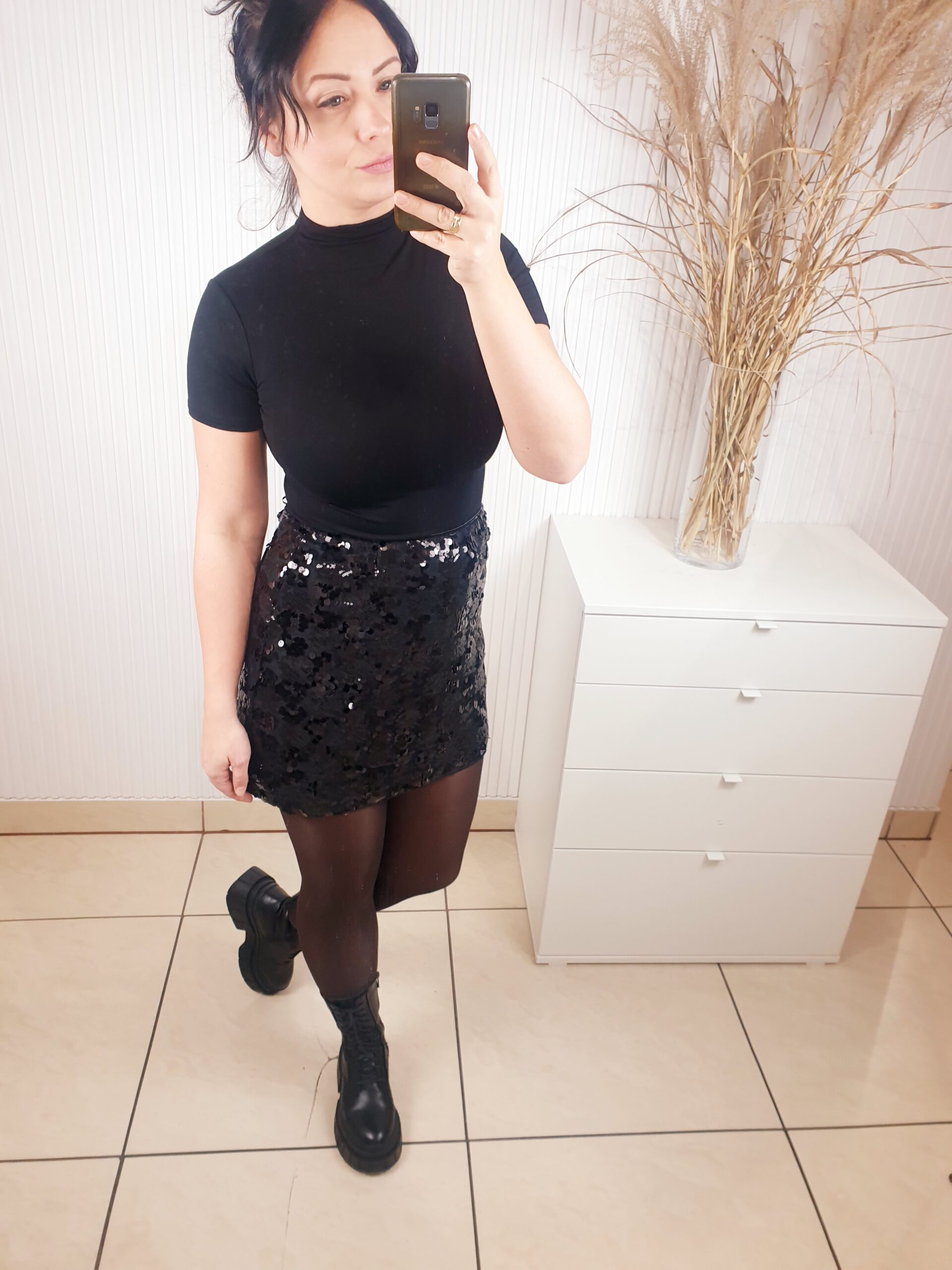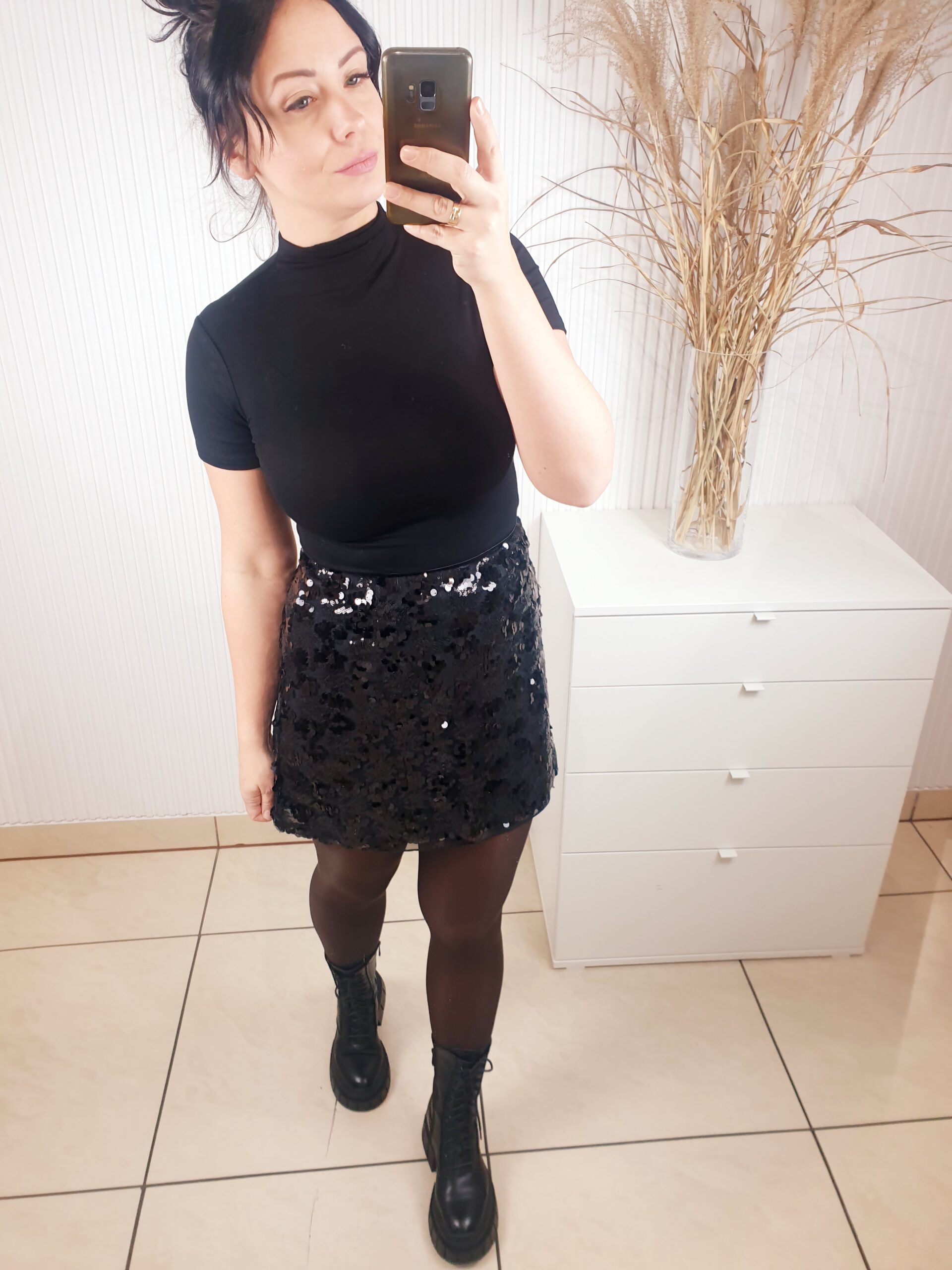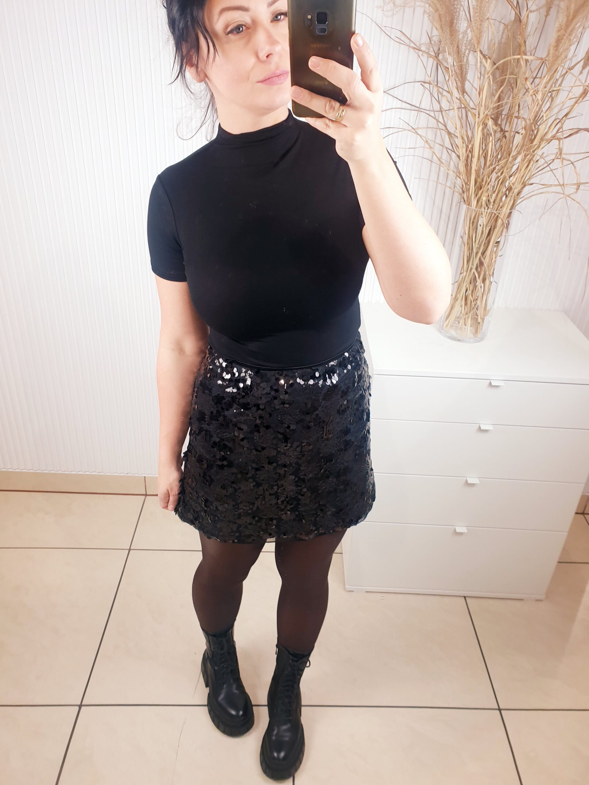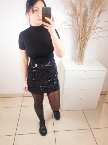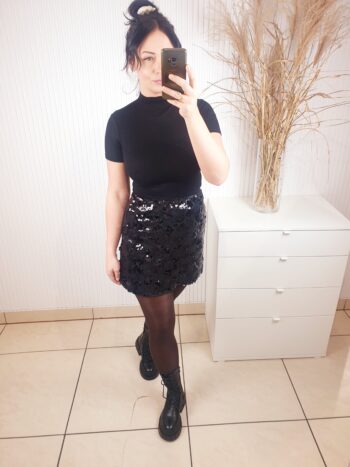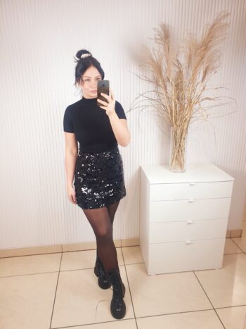 Spódnica cekinowa zapinana na zamek o długości mini. Posiada podszewkę oraz warstwę na której wyszyte są cekiny o różnych rozmiarach. Idealna na święta oraz okres karnawałowo-sylwestrowy.