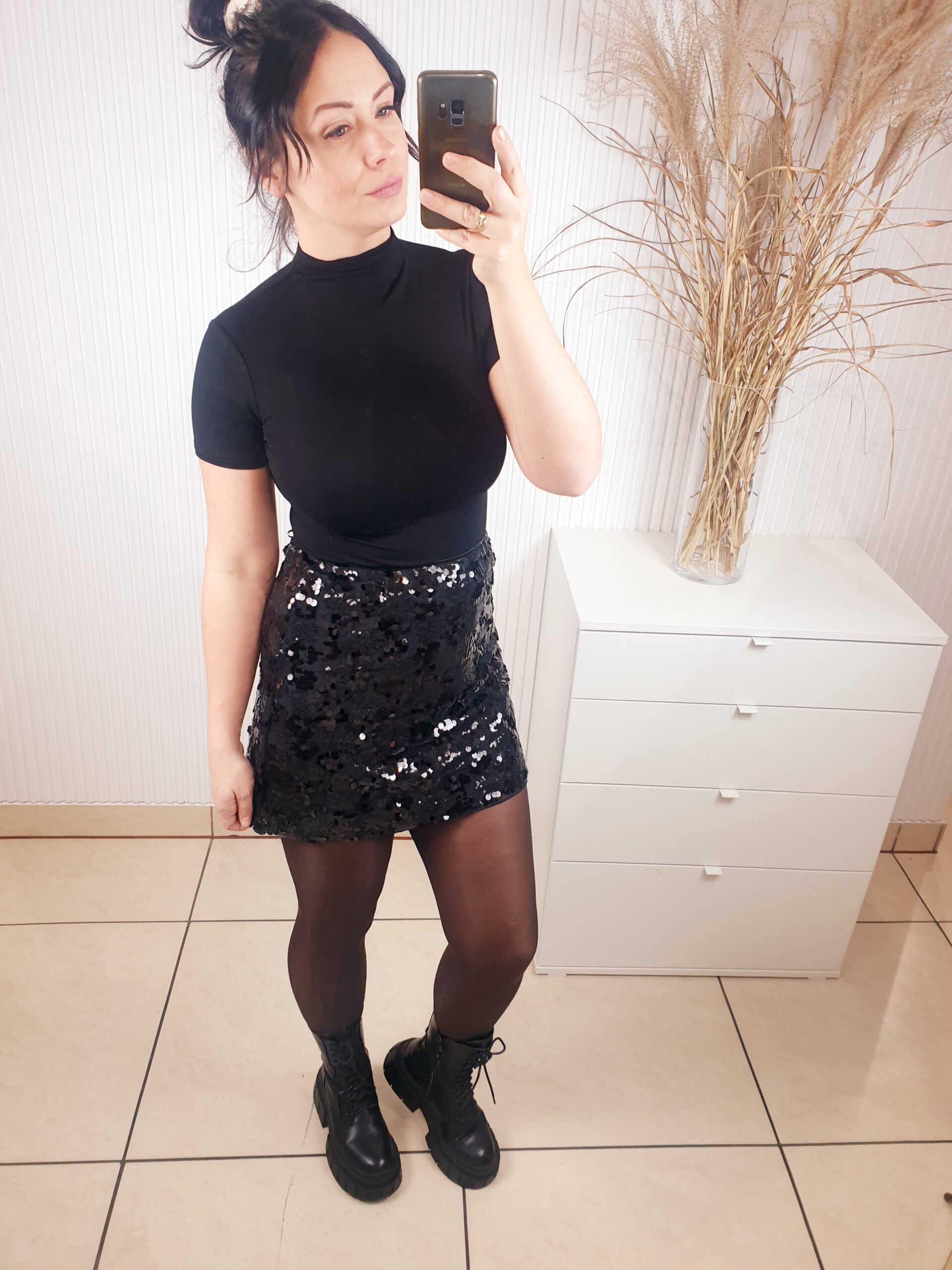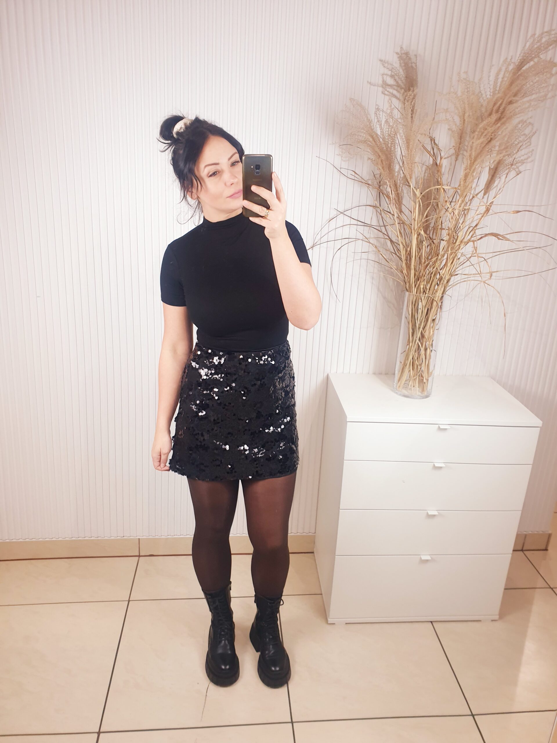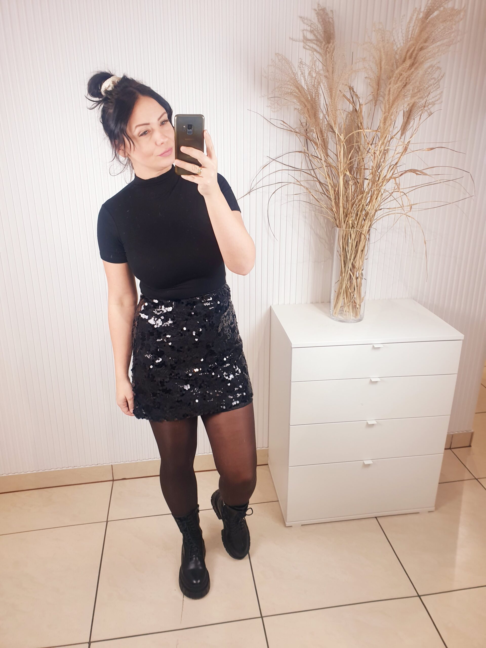 Spódnica cekinowa zapinana na zamek o długości mini. Posiada podszewkę oraz warstwę na której wyszyte są cekiny o różnych rozmiarach. Idealna na święta oraz okres karnawałowo-sylwestrowy.