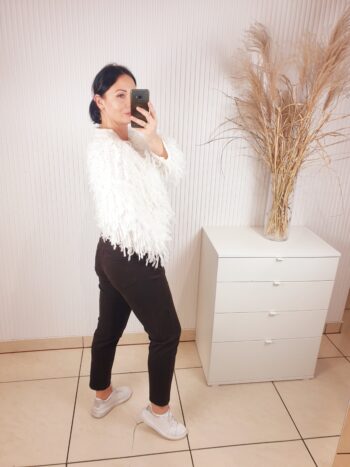 Jeansy mom fit to ponadczasowy klasyk o luźniejszym kroju z wysokim stanem, który zapewni komfort i niezrównany styl. W przepięknym i najmodniejszym w tym sezonie odcieniu głębokiej czekolady. Swoją prostotą i uniwersalnością skradną Twoje serce i umożliwią wiele modnych zestawień. Wyższy stan zapewni komfort noszenia i pięknie podkreśli talię.