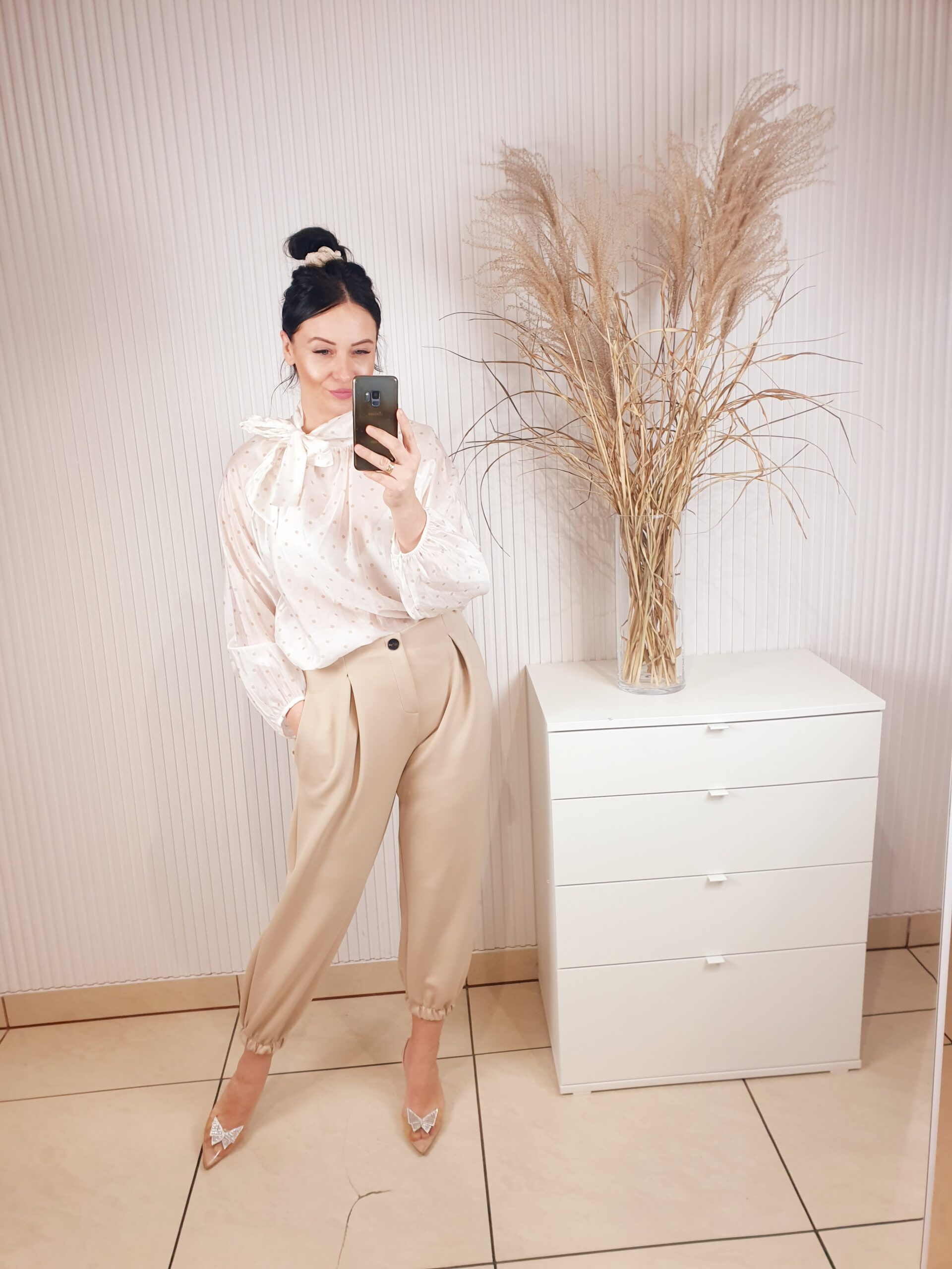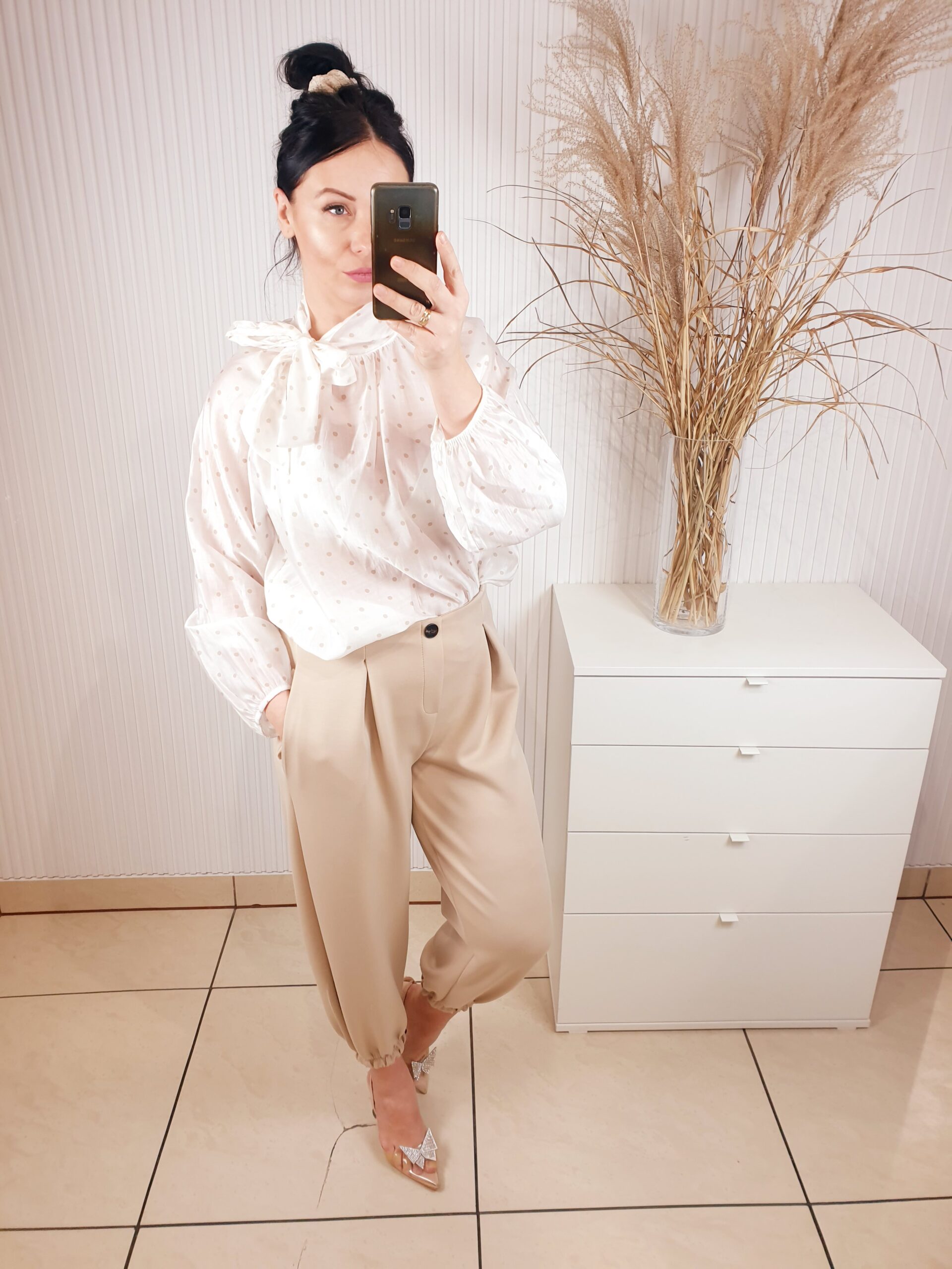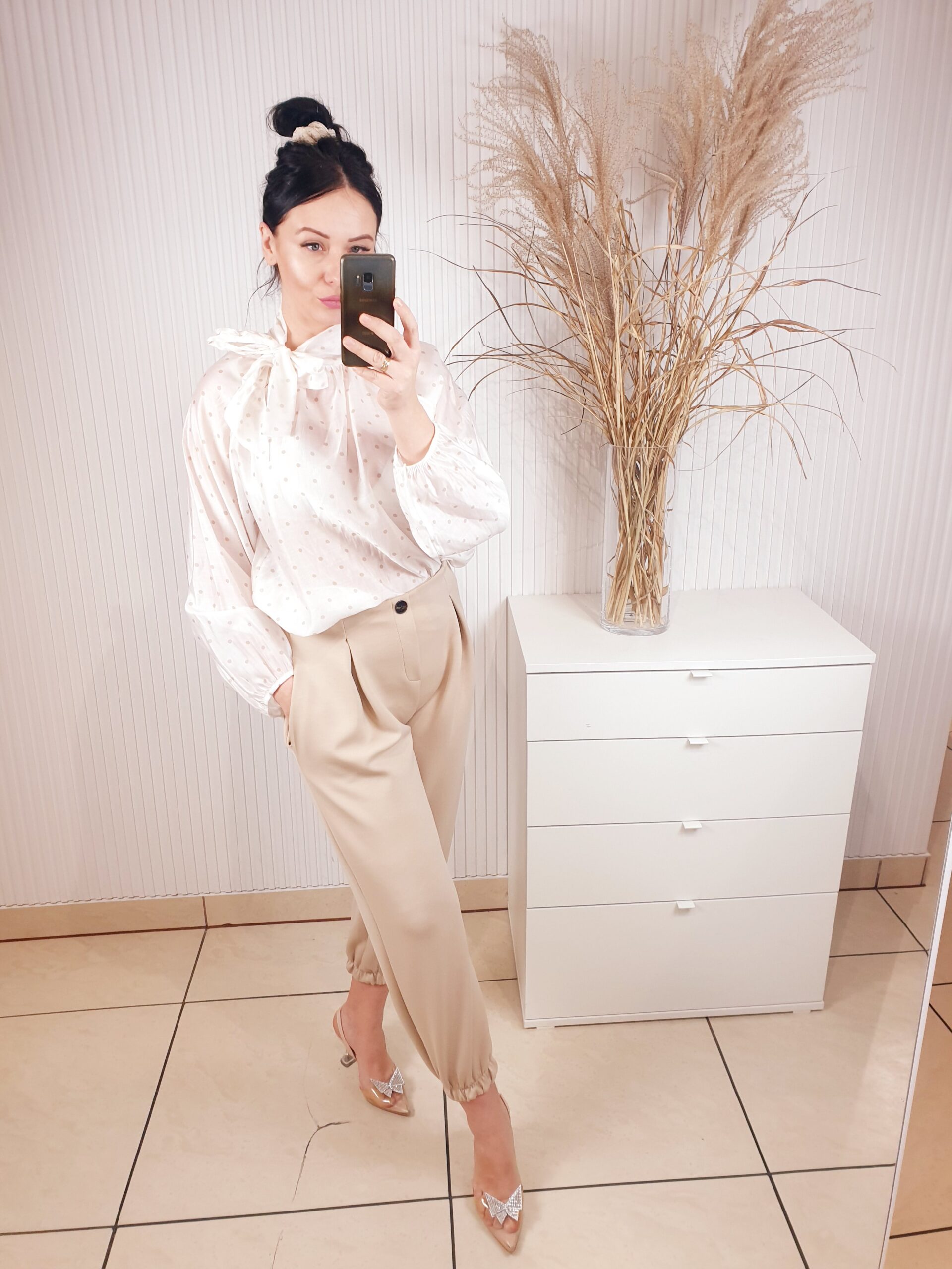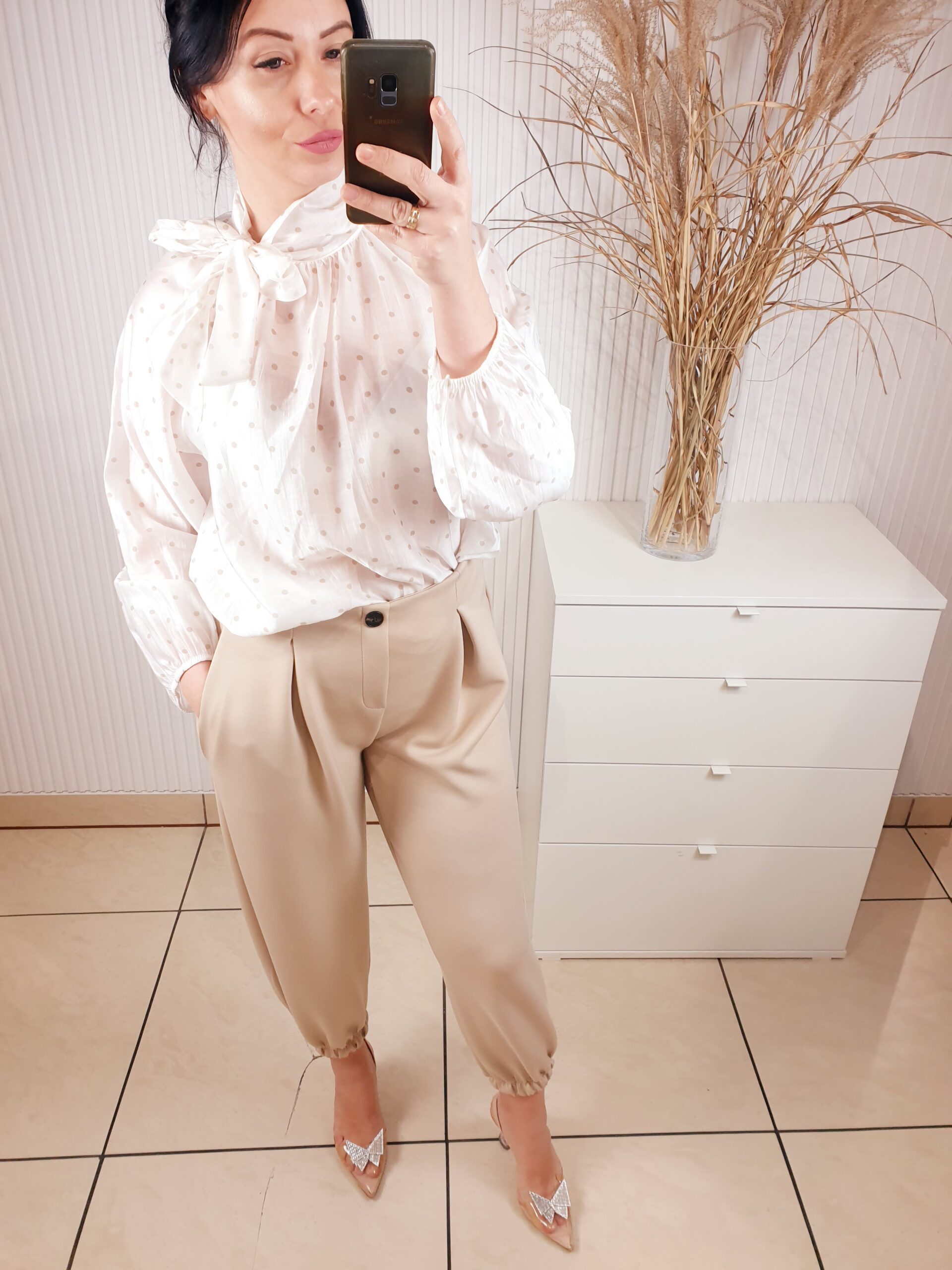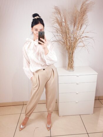 Spodnie wykonane z wiskozy, z materiału typu masełko. Posiadają gumkę w pasie oraz kieszenie po bokach. Idealnie sprawdzą się zarówno do eleganckich jak i sportowych stylizacji. Posiadają gumkę również u dołu nogawki. Bardzo wygodne i komfortowe w noszeniu.