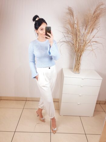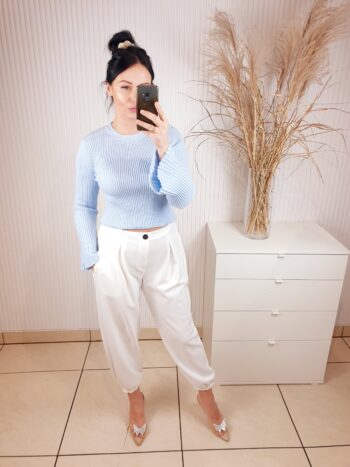 Spodnie wykonane z wiskozy, z materiału typu masełko. Posiadają gumkę w pasie oraz kieszenie po bokach. Idealnie sprawdzą się zarówno do eleganckich jak i sportowych stylizacji. Posiadają gumkę również u dołu nogawki. Bardzo wygodne i komfortowe w noszeniu.