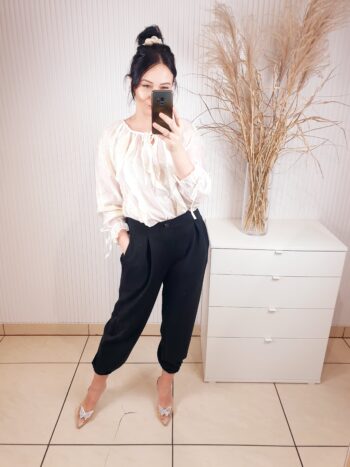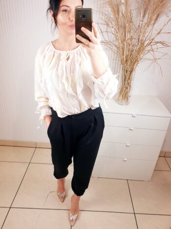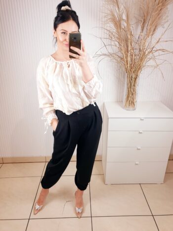 Spodnie wykonane z wiskozy, z materiału typu masełko. Posiadają gumkę w pasie oraz kieszenie po bokach. Idealnie sprawdzą się zarówno do eleganckich jak i sportowych stylizacji. Posiadają gumkę również u dołu nogawki. Bardzo wygodne i komfortowe w noszeniu.