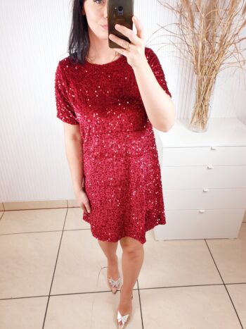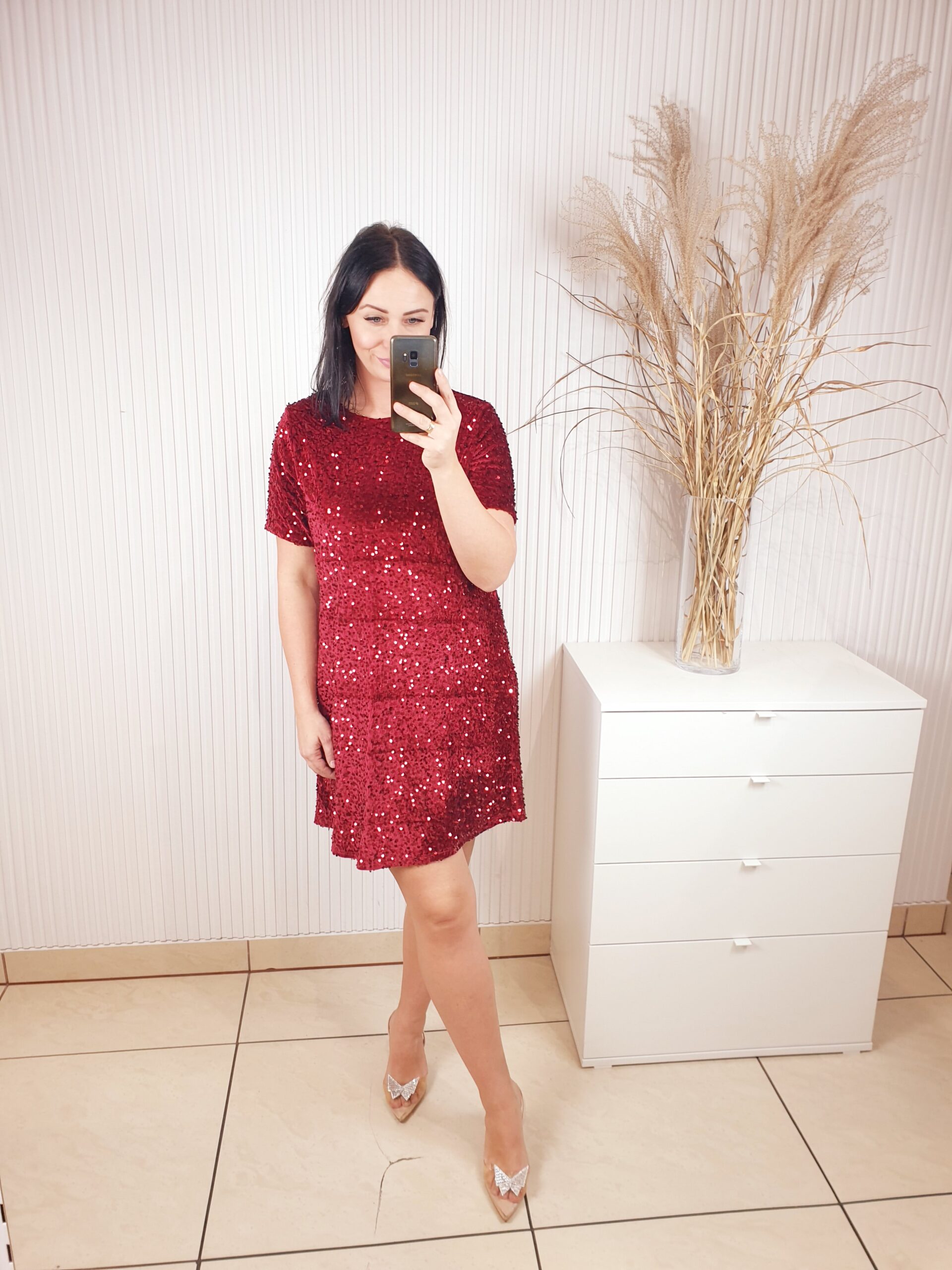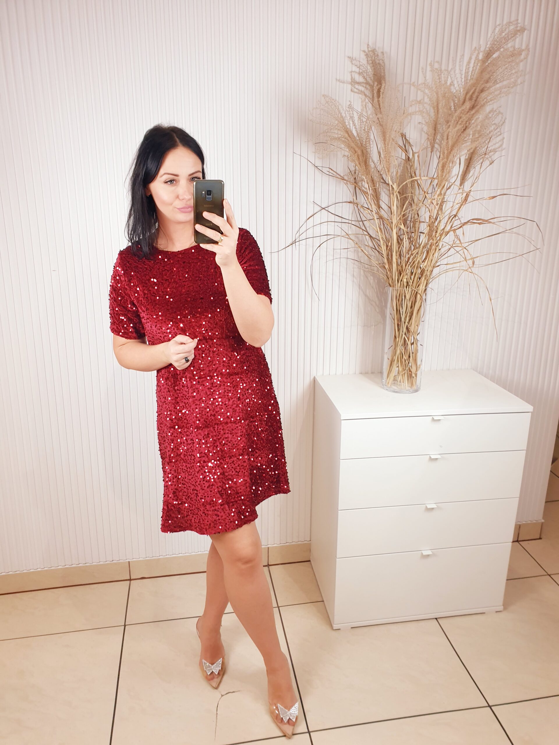 sukienka, cekinowa, krótki rękaw, mini, okrągły dekolt,